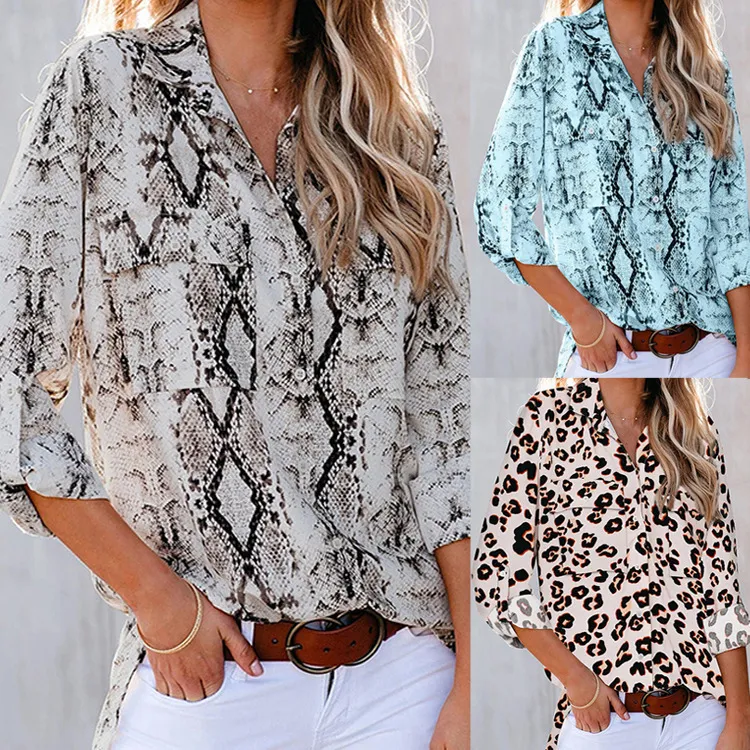 Fashion Leopard Print V-neck T-shirt Shirt