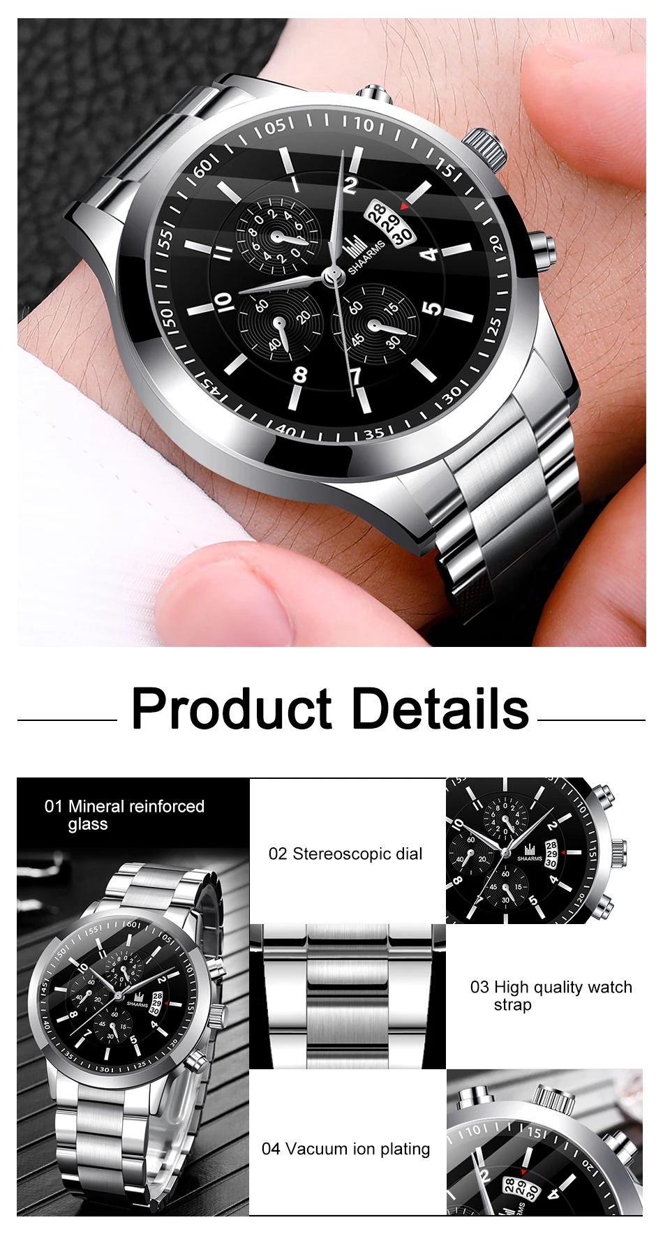 - Crafted from premium-grade stainless steel, the watch resists corrosion, wear, and tarnish.