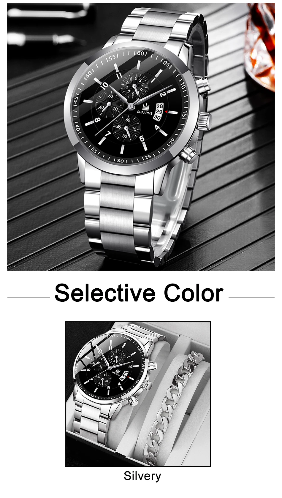 With its luxurious design and matching bracelet set, this watch makes an excellent gift for birthdays, anniversaries, or holidays. Its versatile appeal ensures it suits men of all ages.