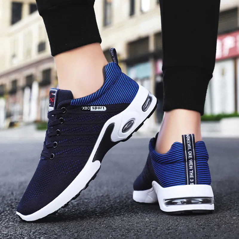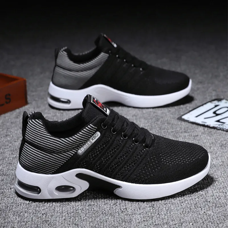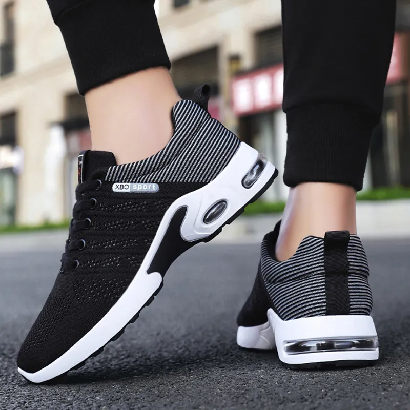 Fashion Mesh Shoes With Striped Design Men Outdoor Breathable Lace-up Sneakers Csual Lightweight Running Sports Shoes For Men