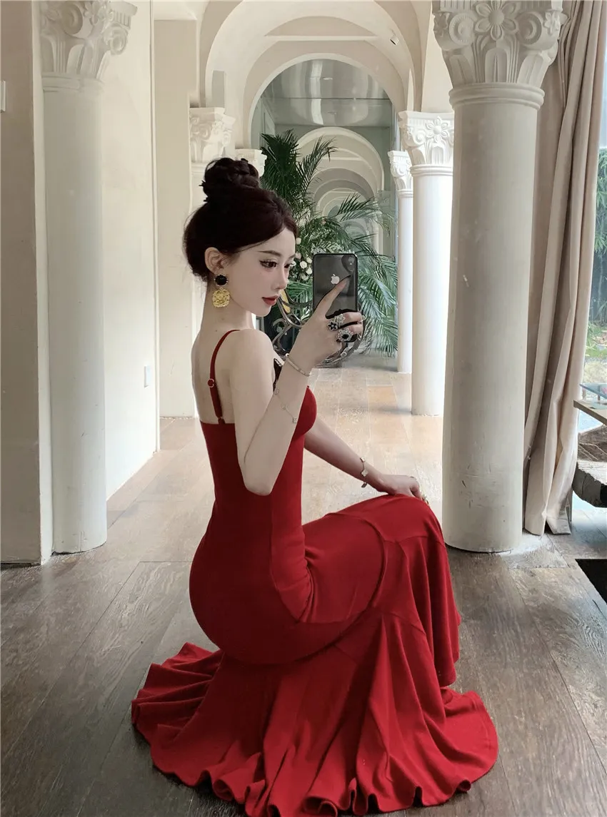 In conclusion, the Fashion Personality Lace V-Neck Sling Dress is a versatile and chic addition to any wardrobe. The flattering V-neckline, delicate lace detailing, and sling design combine to create a feminine, elegant look that is perfect for a wide range of occasions. Whether you’re dressing up for an evening event, attending a wedding, or enjoying a casual outing, this dress provides both comfort and style.