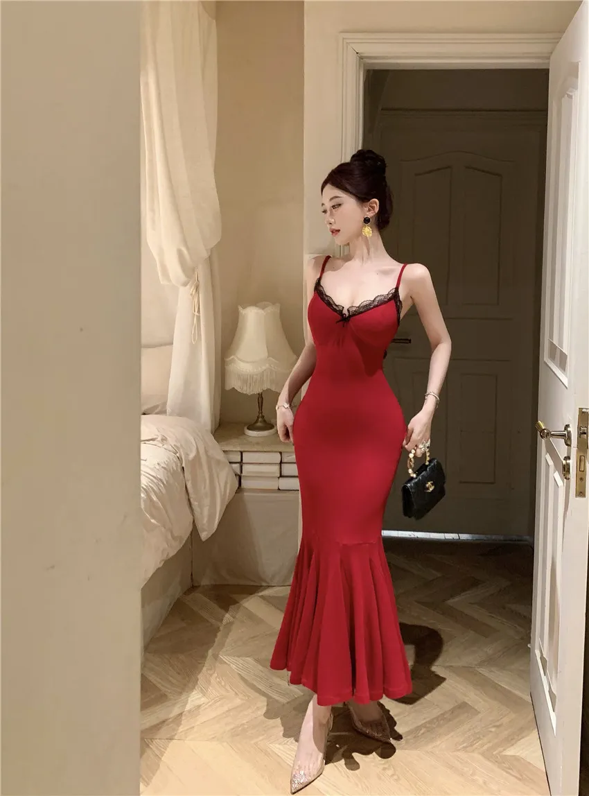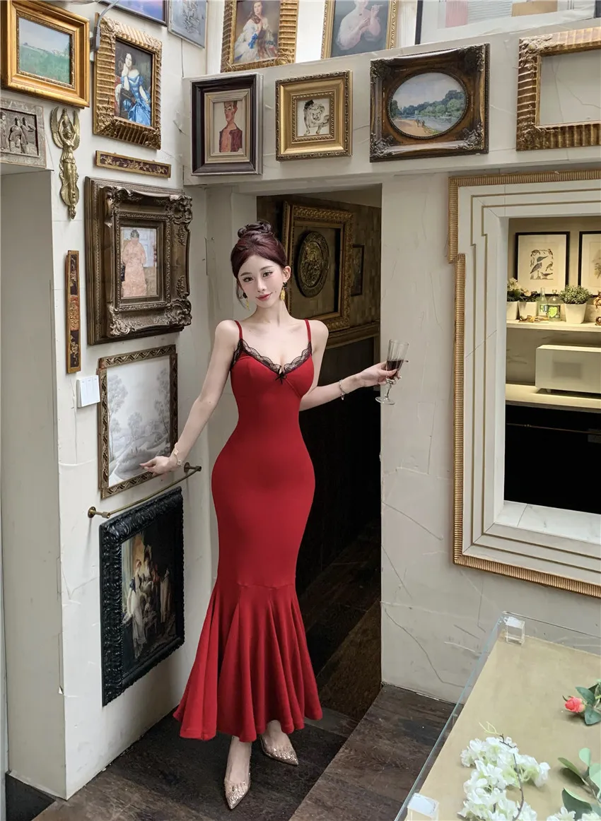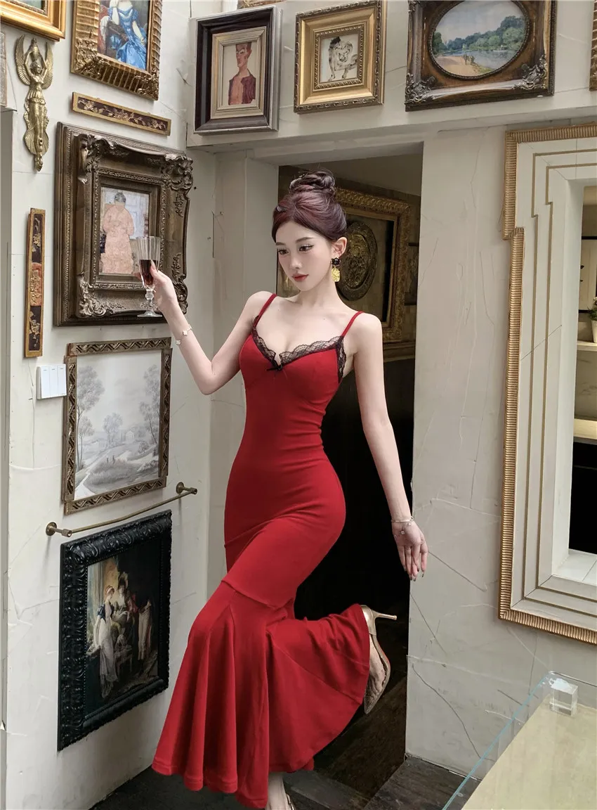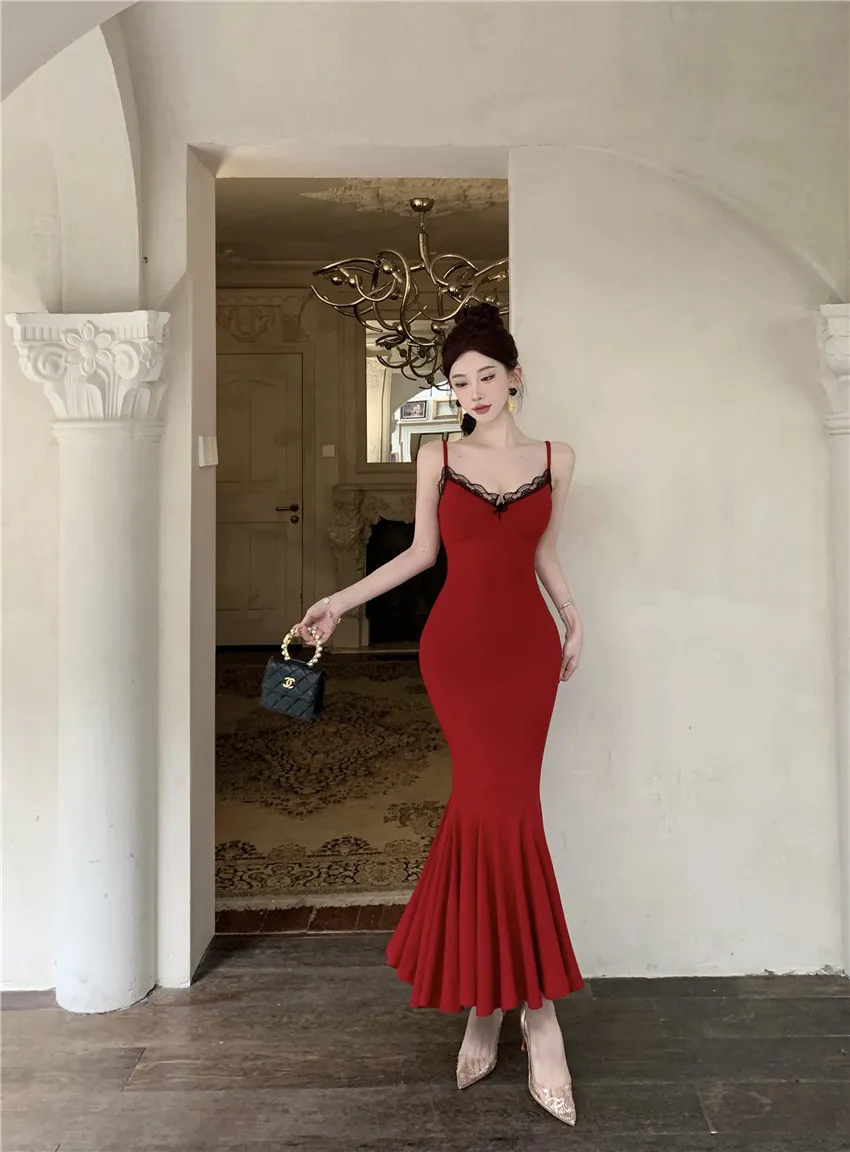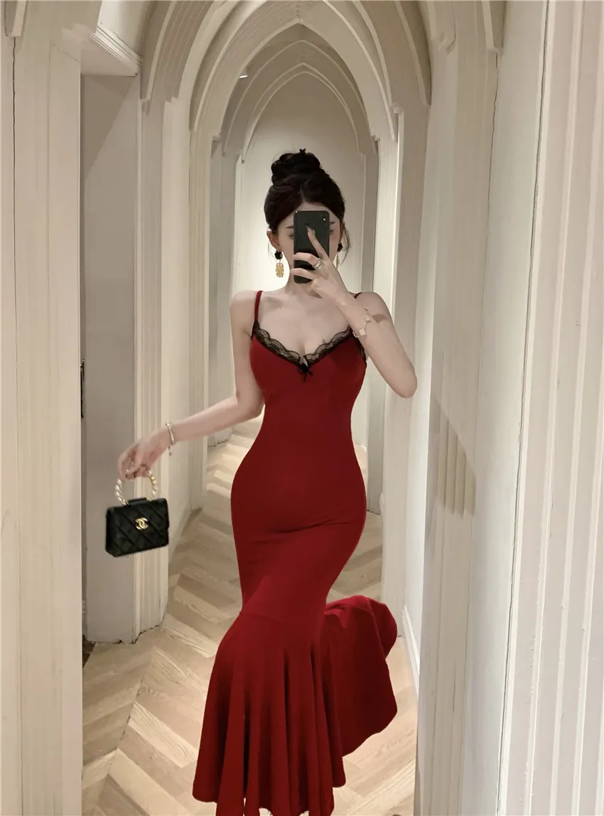 Fashion Personality Lace V-Neck Sling Dress for Women: Elegant, Chic, and Effortlessly Stylish