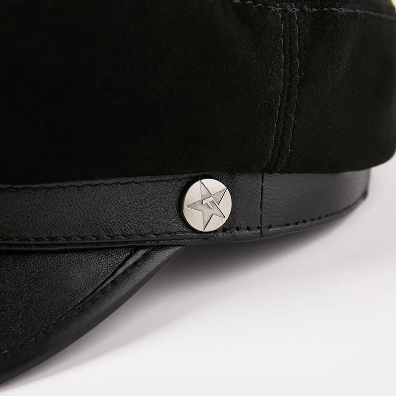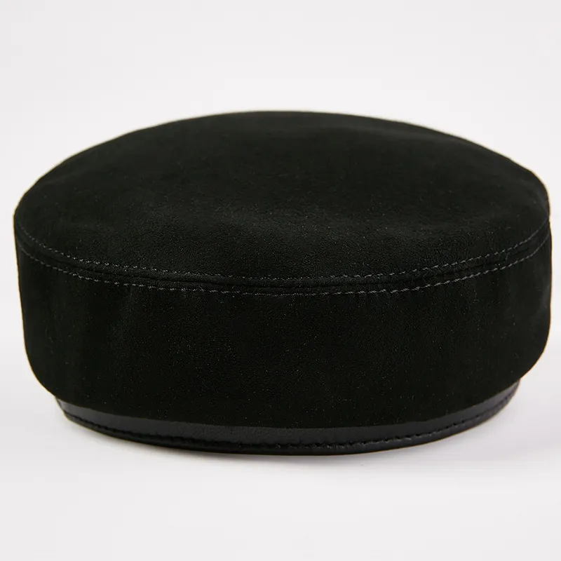 Fashion Sheepskin Flat-top Hat Youth Student's Hat Unisex Leather Hat Korean Casual Navy Hat