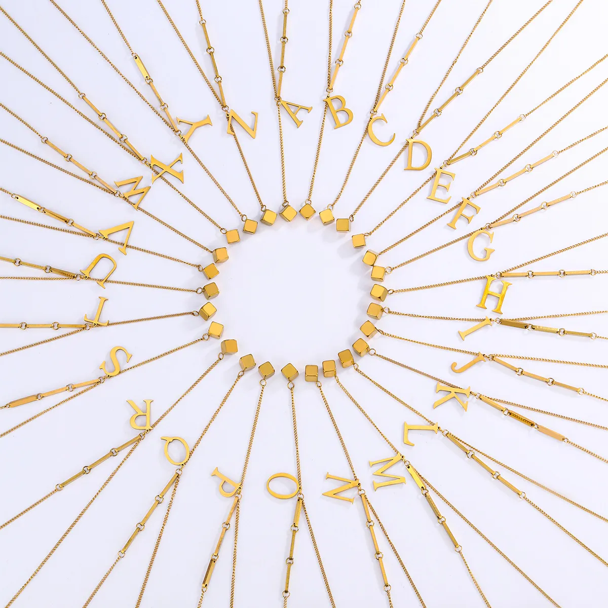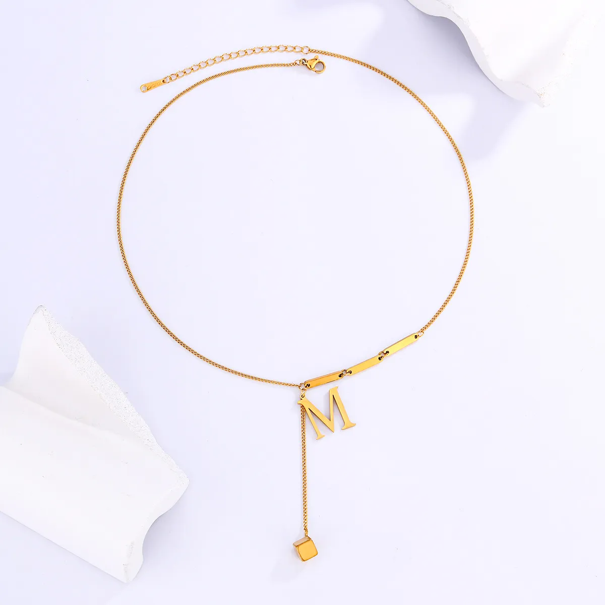 Fashion Simple Titanium Steel Tassel 26 Letters Square Pendant Necklac