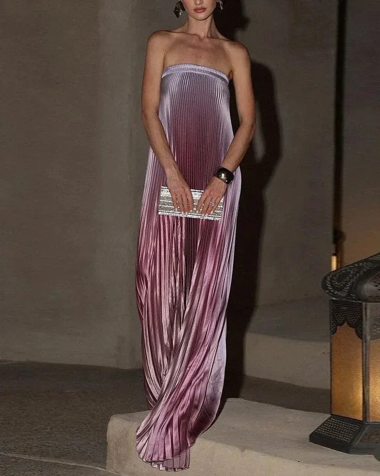Fashion Sleeveless Tube Top Mermaid Color Pleated Dress