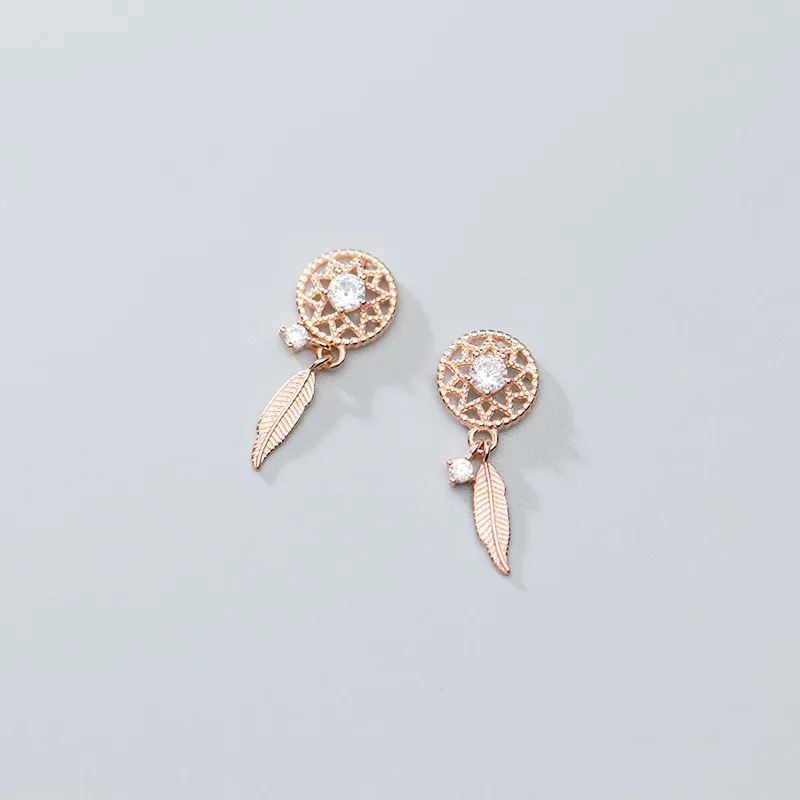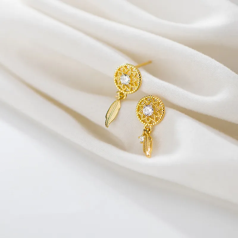 Fashion Small Diamond Mesh Temperament Feather Earrings