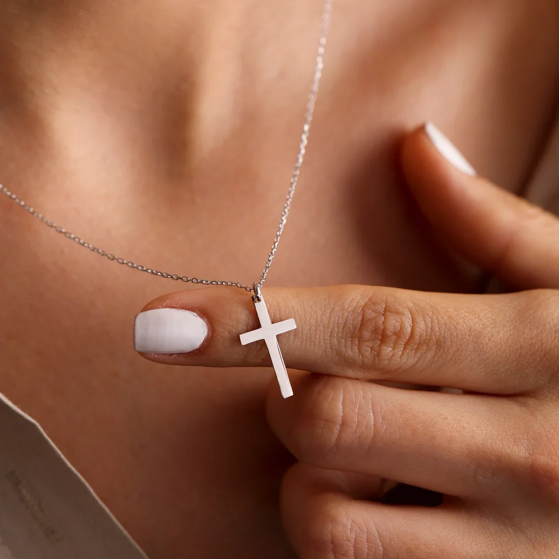 Pair the necklace with a simple T-shirt and jeans for an effortless, everyday style. The cross pendant adds a touch of charm to casual