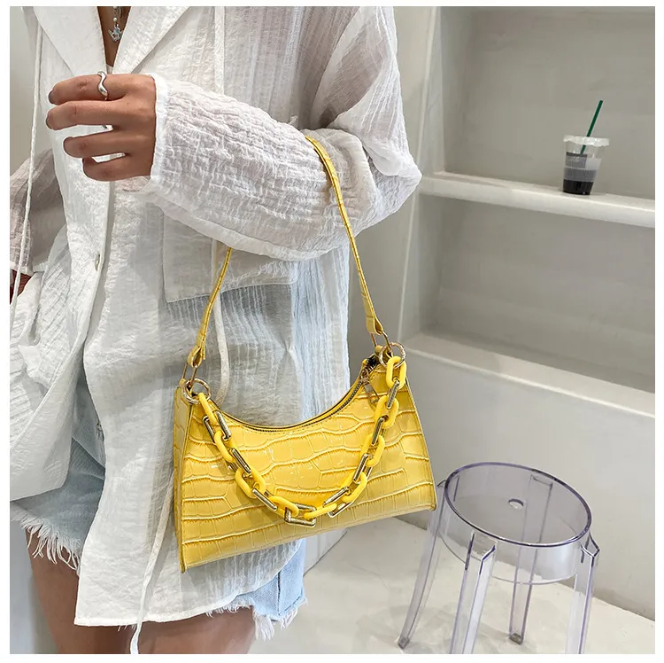 Fashion Stone Texture Shoulder Bag With Chain Women's Underarm Bag