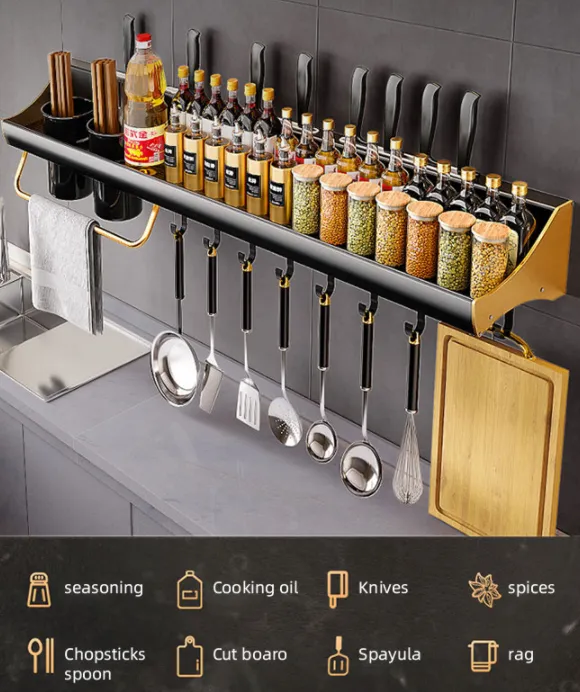 Fashionable Kitchen Shelf Wall-mounted Punch-free Multifunctional