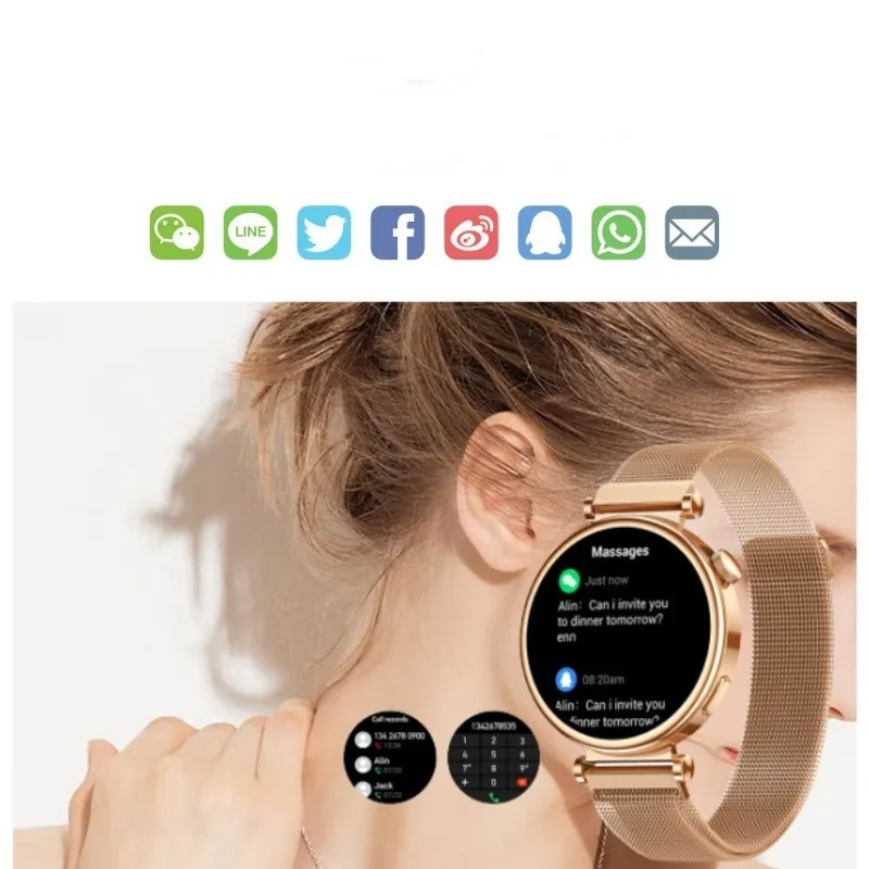Designed with women in mind, this smartwatch comes with customizable watch faces, elegant straps, and an intuitive interface that complements your style. A long battery life ensures that the device can last through your busy schedule with minimal charging. Whether you’re focused on fitness, health tracking, or staying connected on the go, this watch is the perfect companion for every moment.