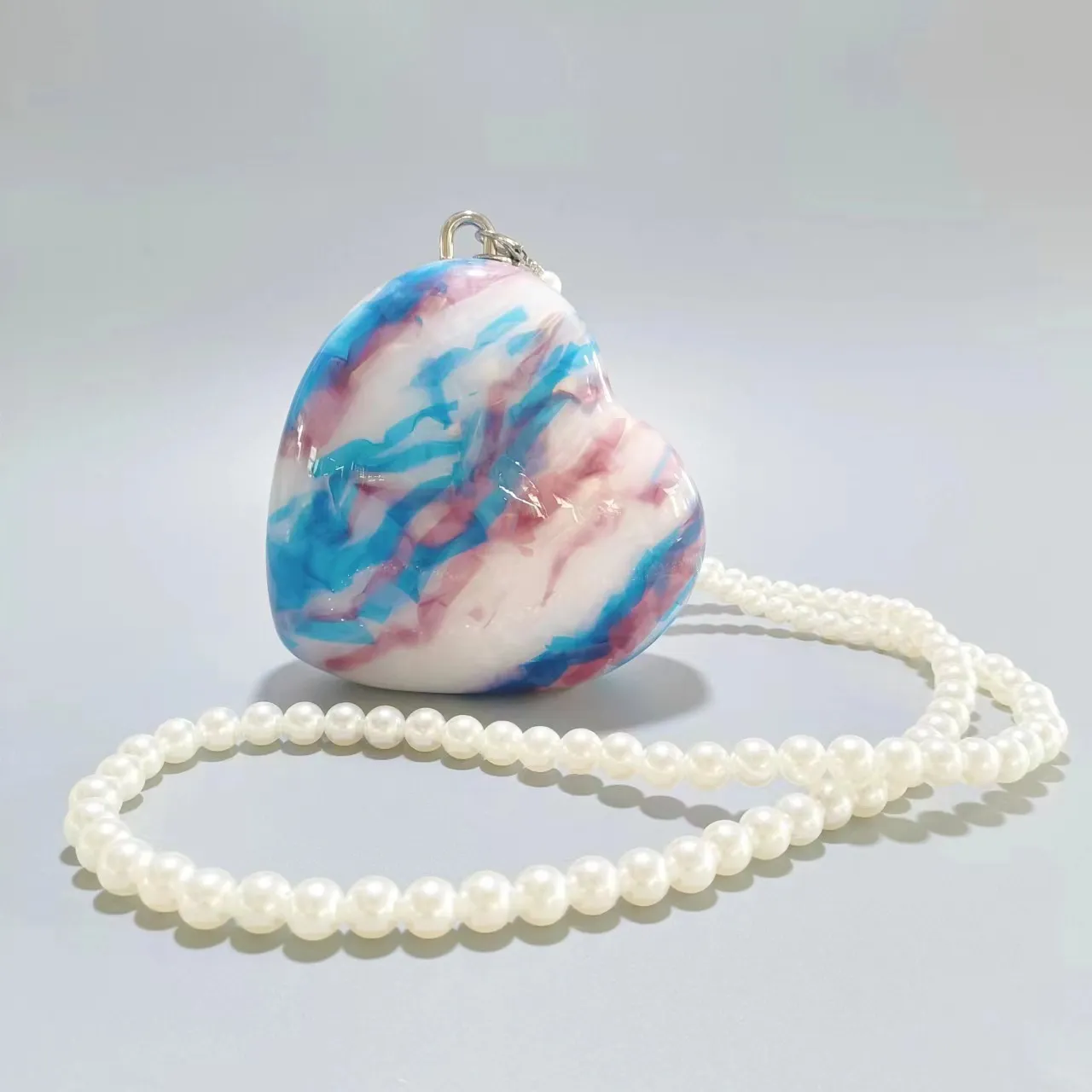 The heart-shaped silhouette and polished acrylic finish make this bag a bold and stylish choice for women who love creative fashion.