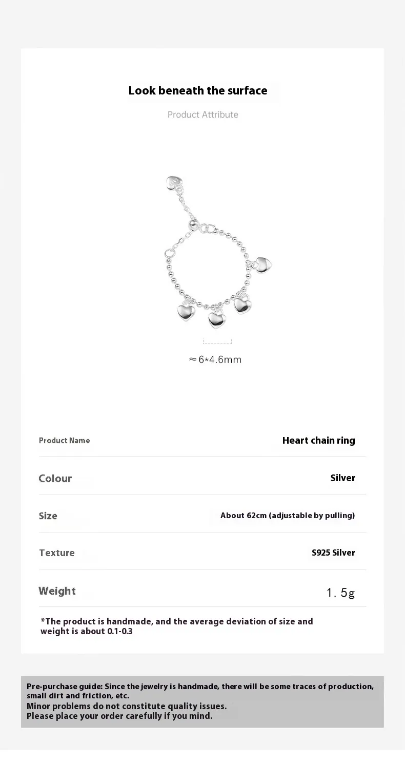 To maintain the beauty of your S925 Pure Silver Heart-Shaped Chain Ring: