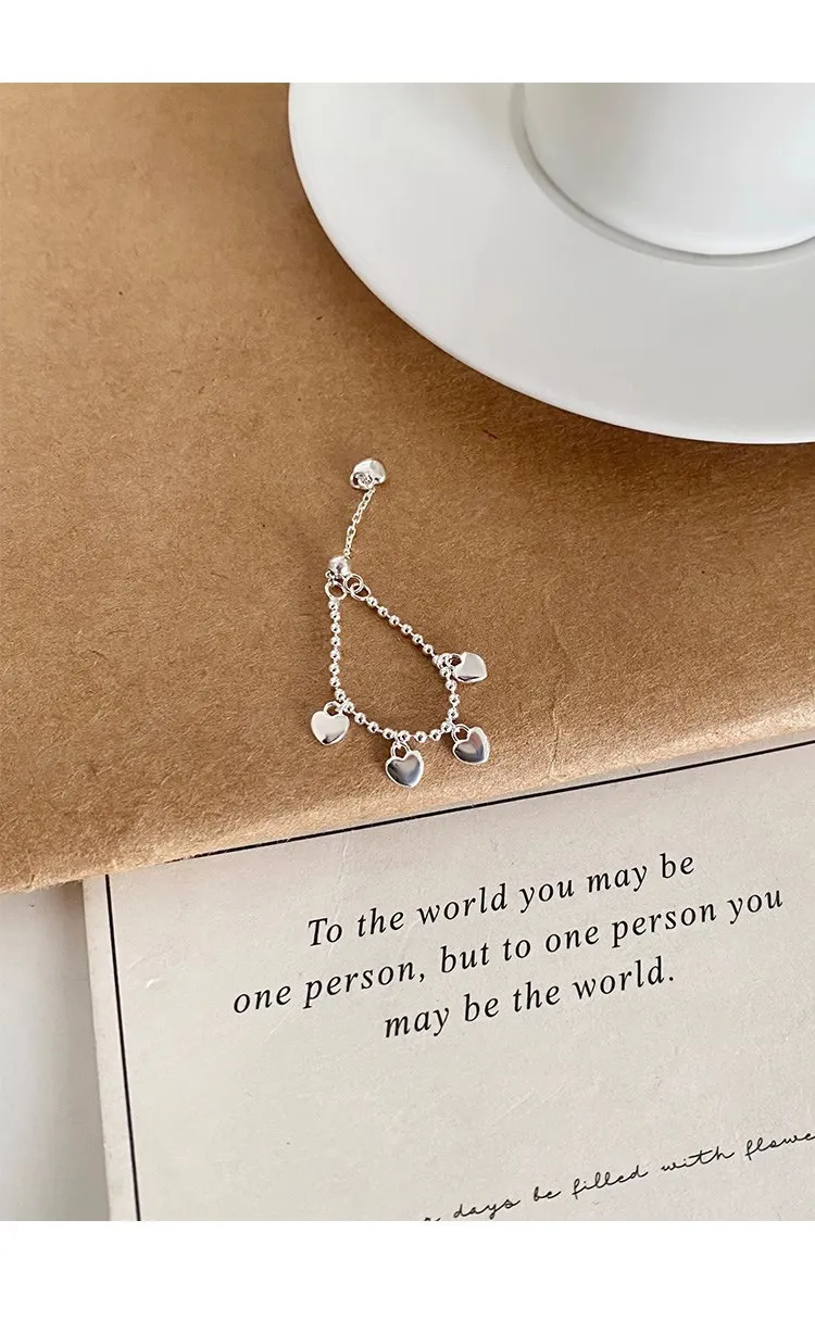 Female Minimalist S925 Pure Silver Heart-shaped Chain Ring