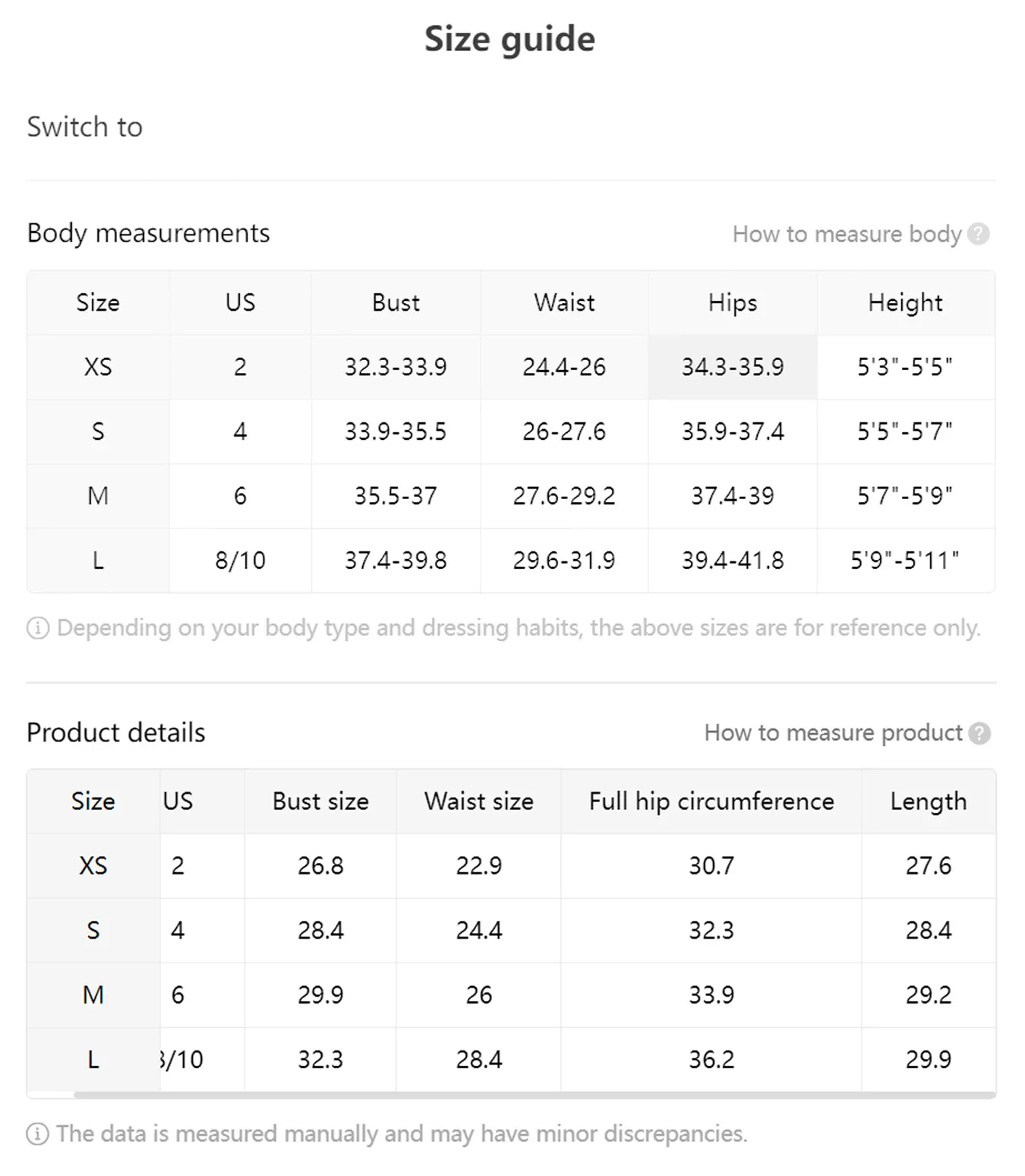 between two sizes. Please allow 2-3cm differences due to manual measurement.