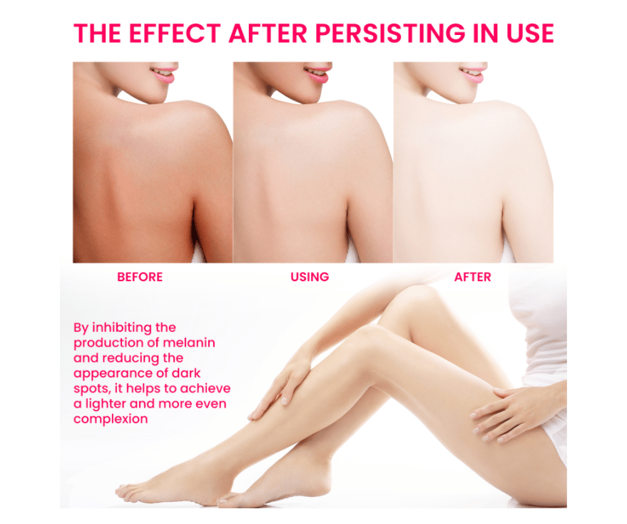 - Aminobutyric Acid:Aminobutyric acid (GABA) calms the skin, reducing stress-induced pigmentation and supporting a healthier, whitened, and pinkish appearance.