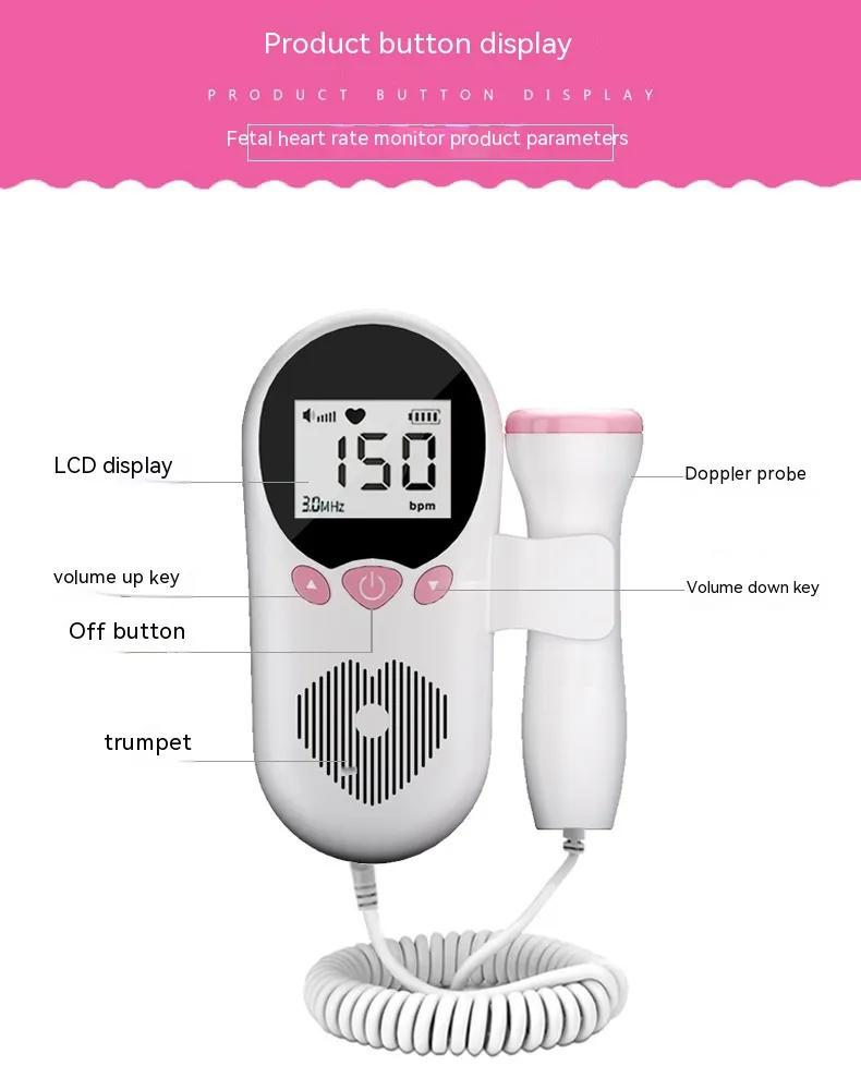 - LCD Display: The built-in LCD display provides real-time monitoring of your baby’s heartbeat rate, so you can track its rhythm.