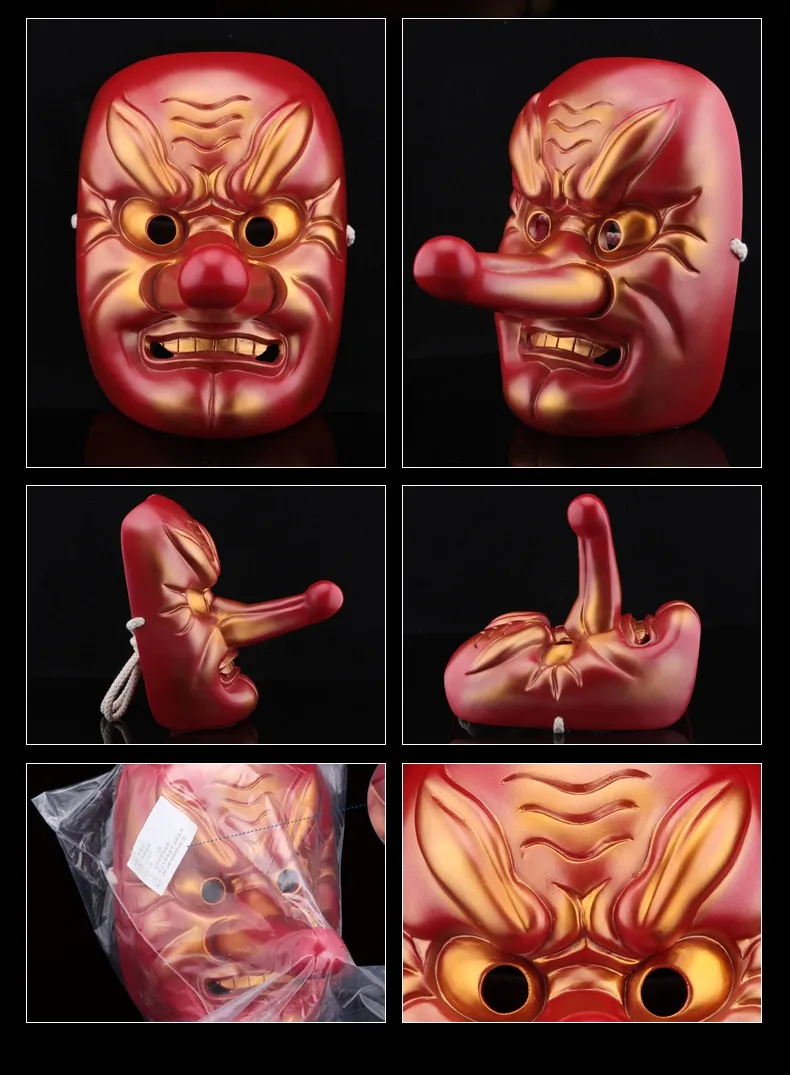 - Rich Textures: The mask features a combination of smooth and textured finishes, mimicking the detailed appearance of traditional wooden masks used in ancient Japanese performances.