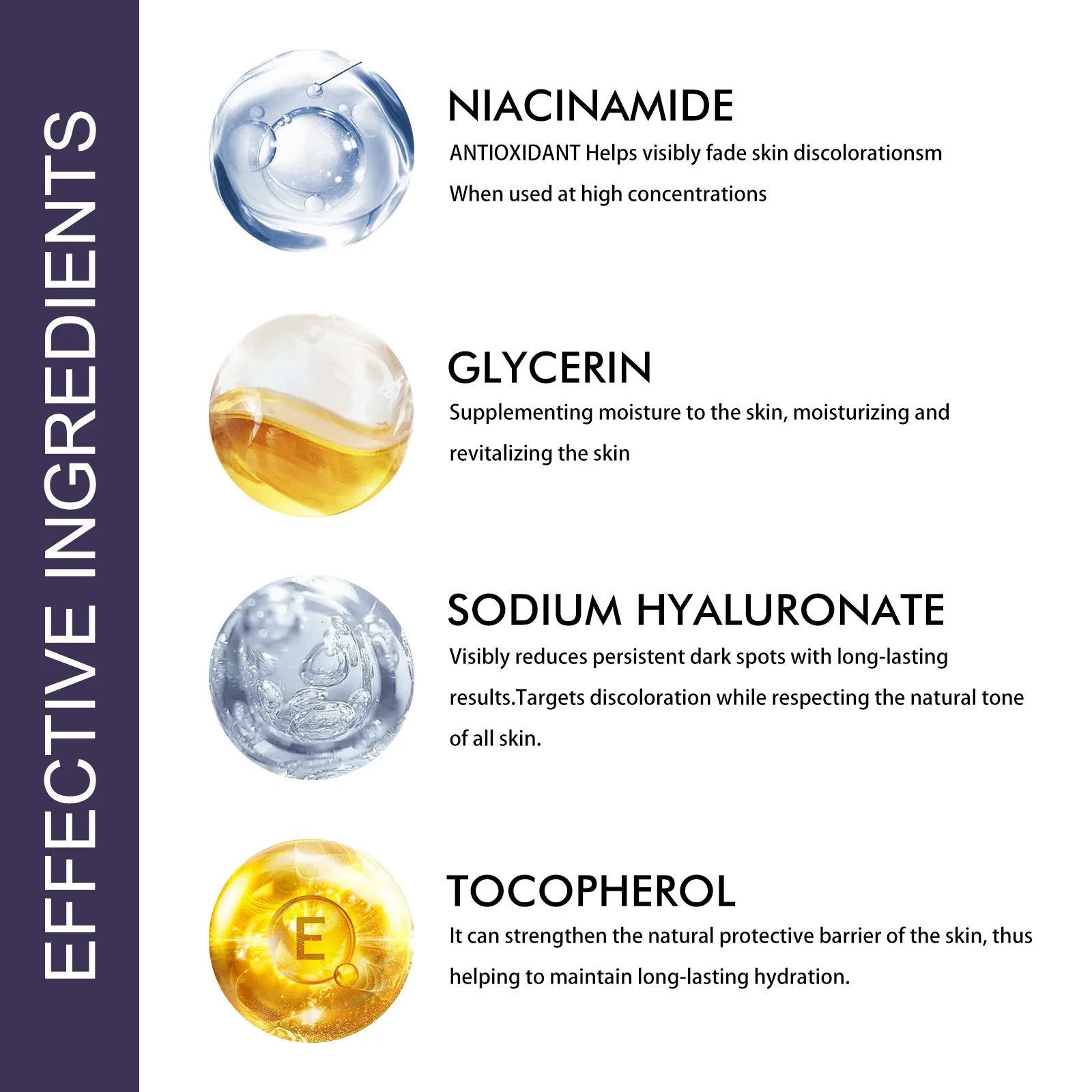 Ingredients: water, niacinamide, glycerol, hyaluronic acid, vitamin E