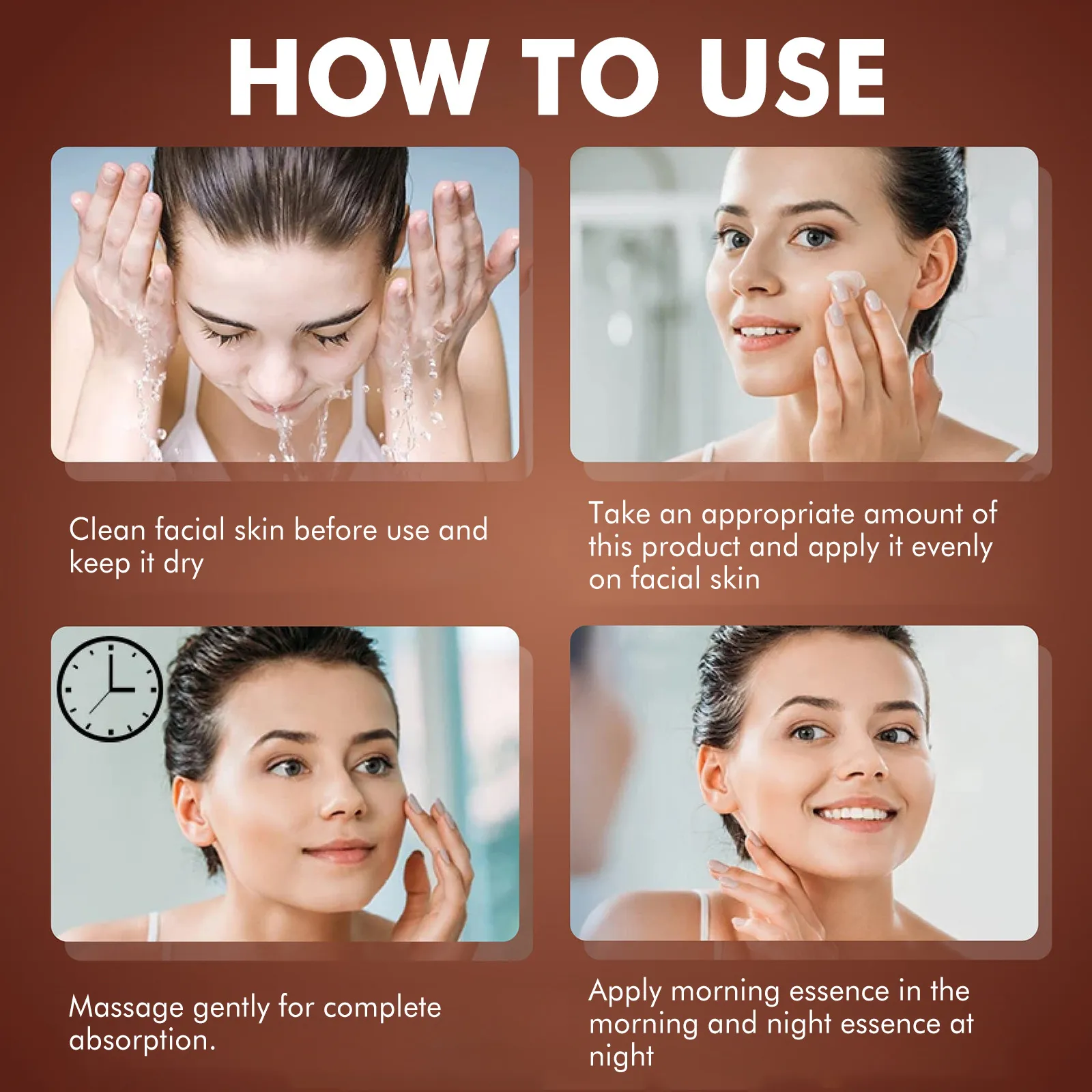 Ingredients: Early C essence: water, vitamin C, hyaluronic acid, nicotinamide, glycerin. Late A essence: water, vitamin E, hyaluronic acid,