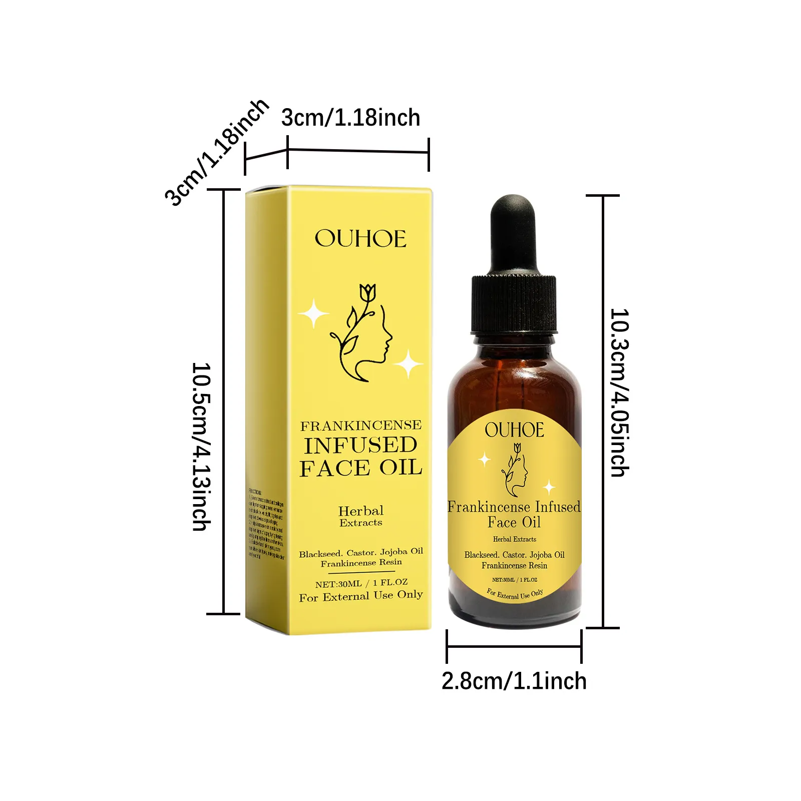 Ingredients: jojoba seed oil, frankincense oil, castor oil seed oil, black seed oil, chamomile extract