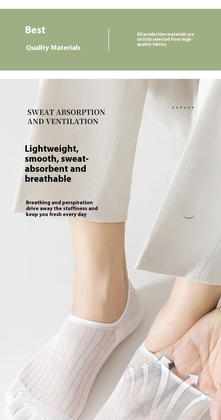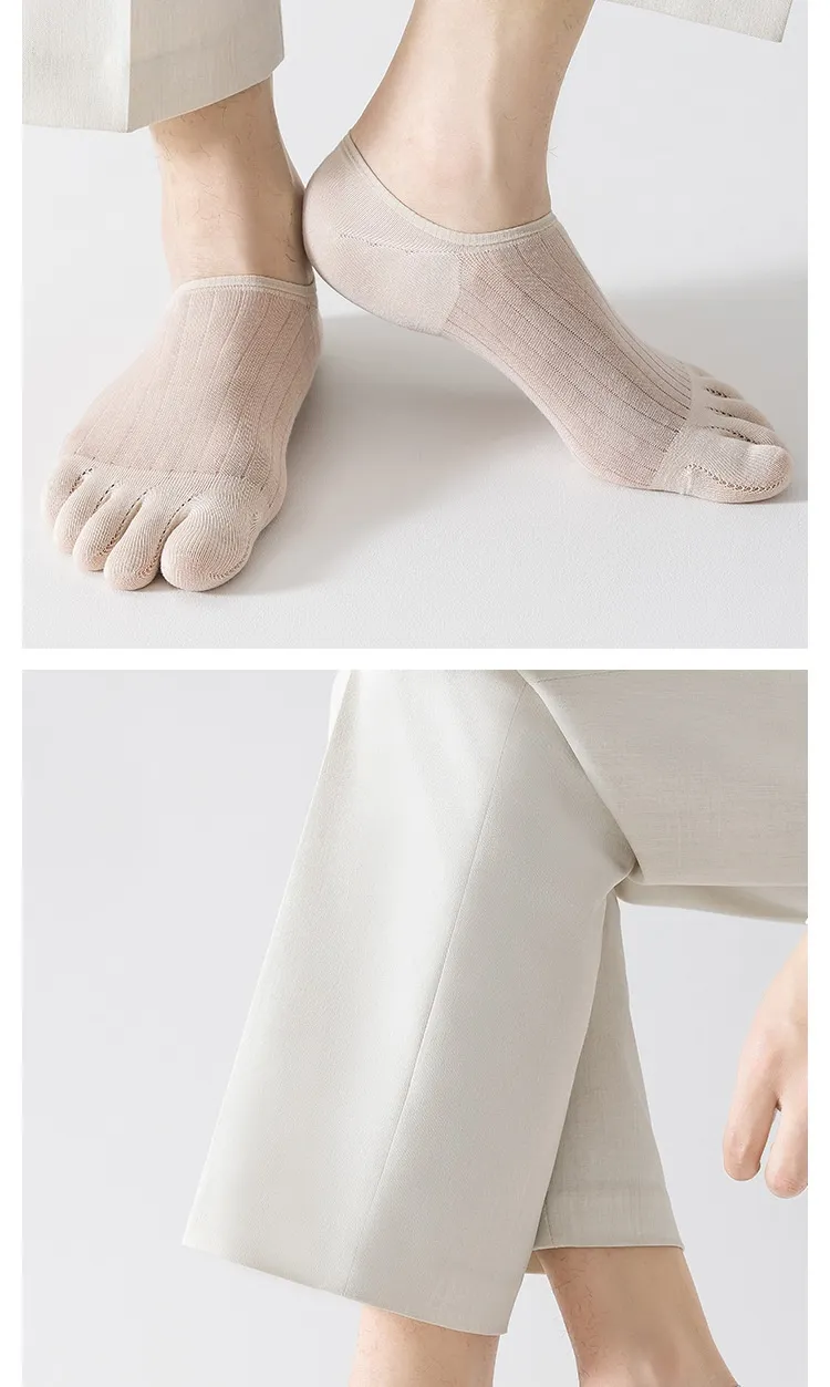 Keep your feet cool, comfortable, and fresh with the Five-finger Men's Summer Cotton Boneless Antibacterial Invisible Socks in Black. These innovative socks are designed for comfort and functionality, providing a perfect fit for summer. With their unique five-finger design and boneless construction, these socks offer freedom of movement, breathability, and protection, ensuring your feet stay dry and comfortable throughout the day.