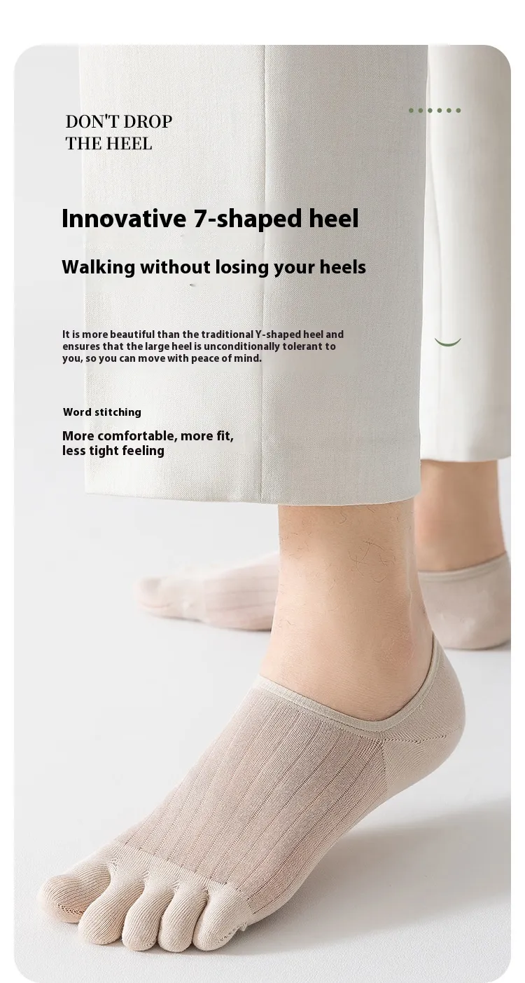 The Five-finger Men's Summer Cotton Boneless Antibacterial Invisible Socks in Black are the perfect choice for anyone