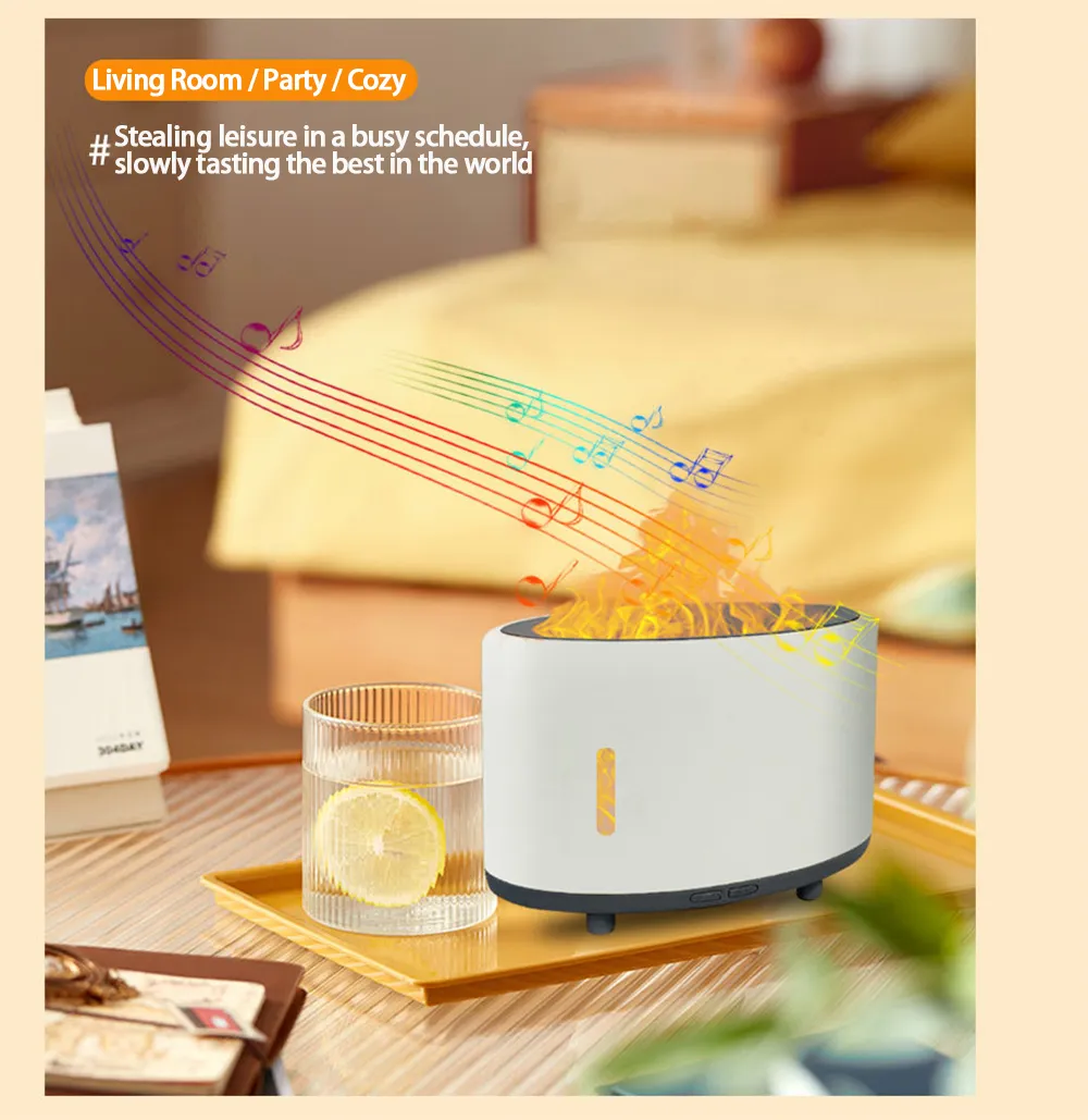 Enhance Your Space with the Flame Humidifier – Aromatherapy, LED Light, and Bluetooth Control