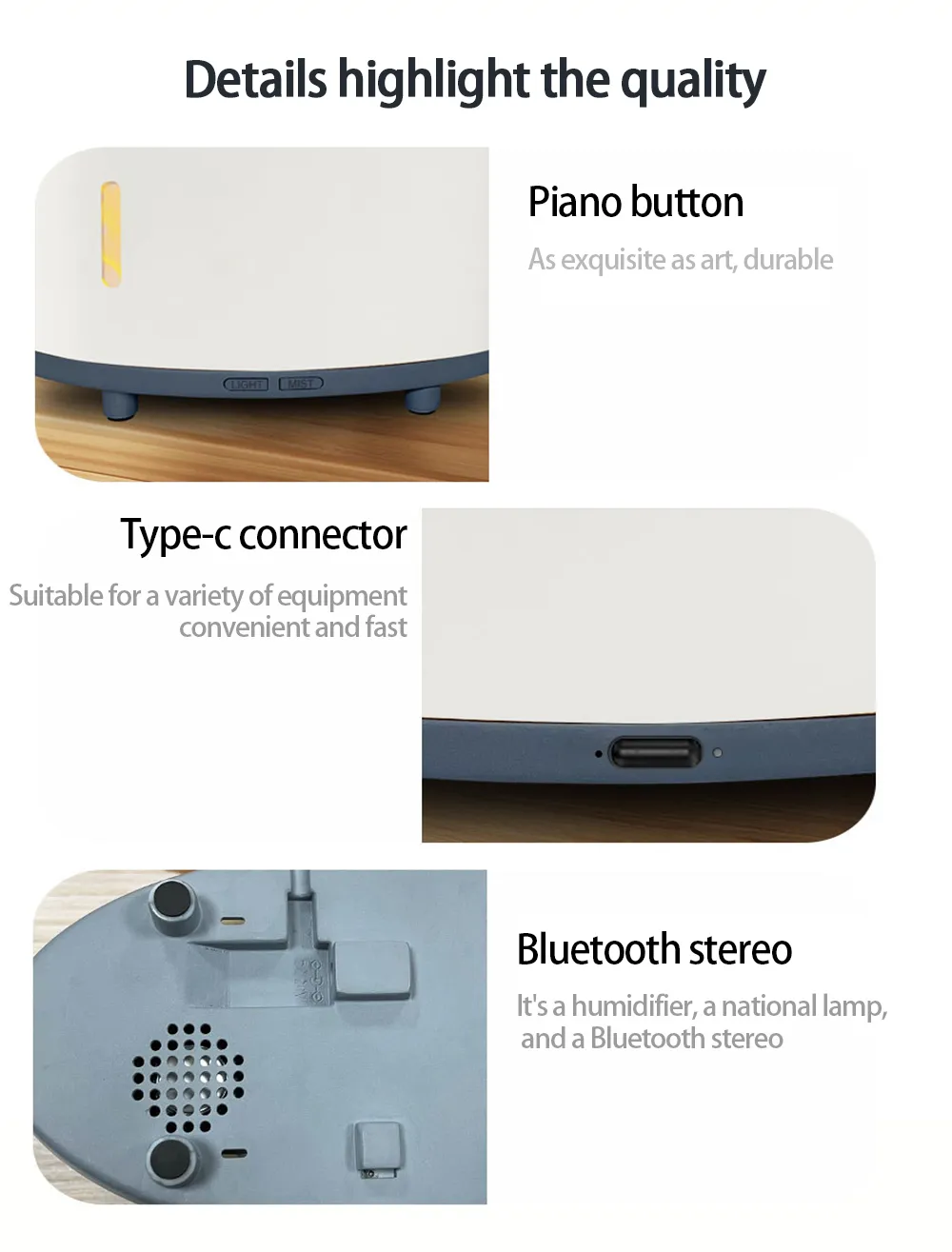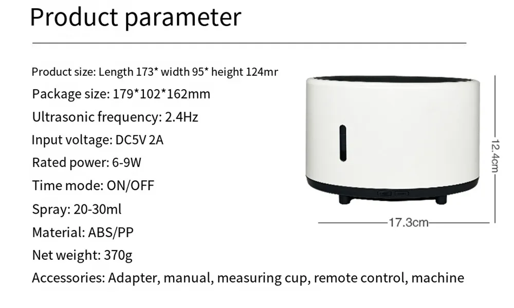 - Functions: Humidifier, Aromatherapy, LED light
