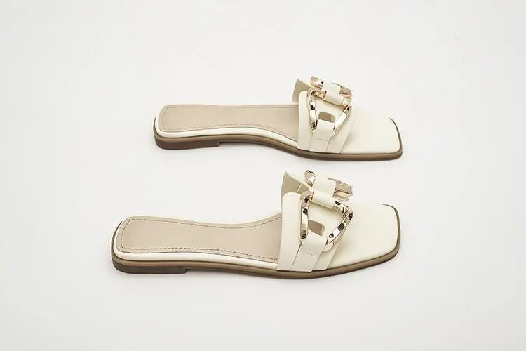 Crafted with a soft, lightweight material, these flat slippers provide a breathable and comfortable fit, making them perfect for the hotter months. The sleek design complements a wide variety of outfits, from casual shorts and dresses to beachwear, allowing you to seamlessly transition from the indoors to the outdoors.