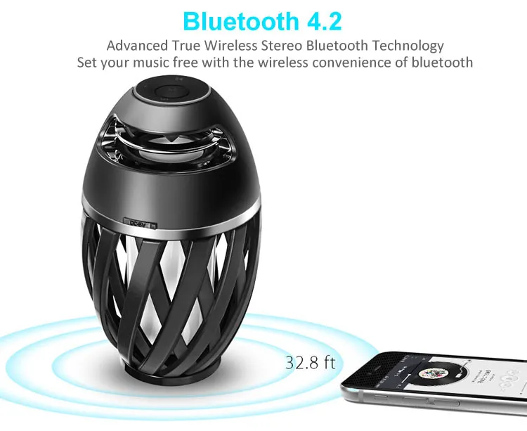 This speaker isn’t just for listening to music. It also doubles as a stunning home decoration. The flame-like LED light serves as both a practical light source and a beautiful piece of decor. Use it to brighten up your living room, bedroom, or study, or as a striking accent piece on your desk or shelf.