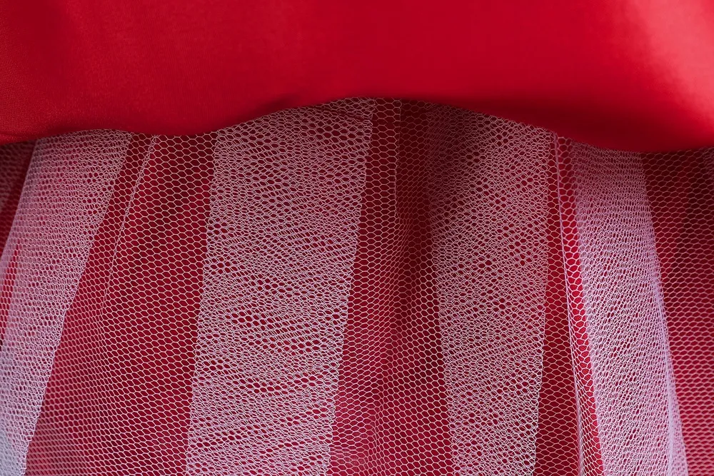 Puffy Gauze Skirt: The voluminous, puffy gauze skirt adds a fairytale-like element to the dress, making it perfect for