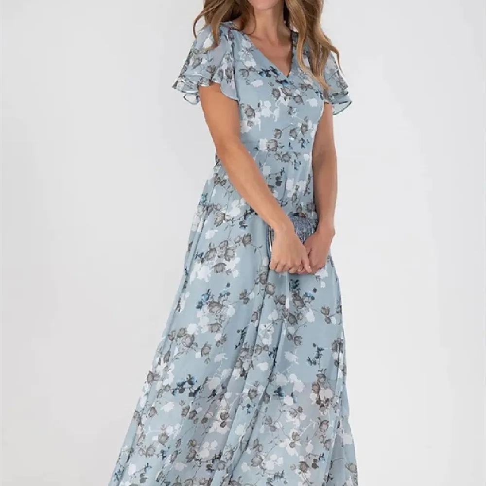 The ruffle details add a playful and feminine touch, making this dress a standout choice for those looking to make a stylish statement. Its lightweight fabric ensures breathability, keeping you cool and comfortable during warm days. The short sleeve design provides a relaxed and easy-to-wear fit, while the floral print adds an effortless yet elegant vibe.