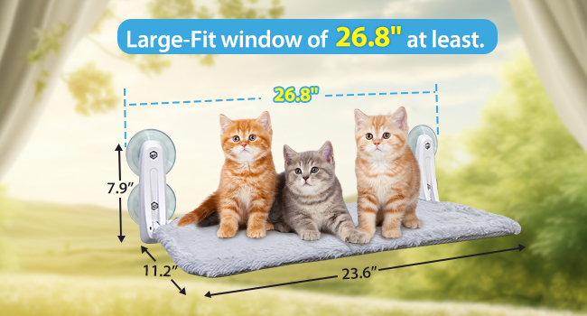 - 【Warm Tips】The cat window perch requires an installation size of 23.6*8 inches (W*H), please be sure to measure your window size before purchase to ensure proper fit. If you have any questions about cat window seat, please contact us for quick assistance