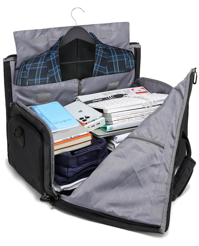 This bag offers a well-organized space to store suits and travel essentials, reducing wrinkles and creases.