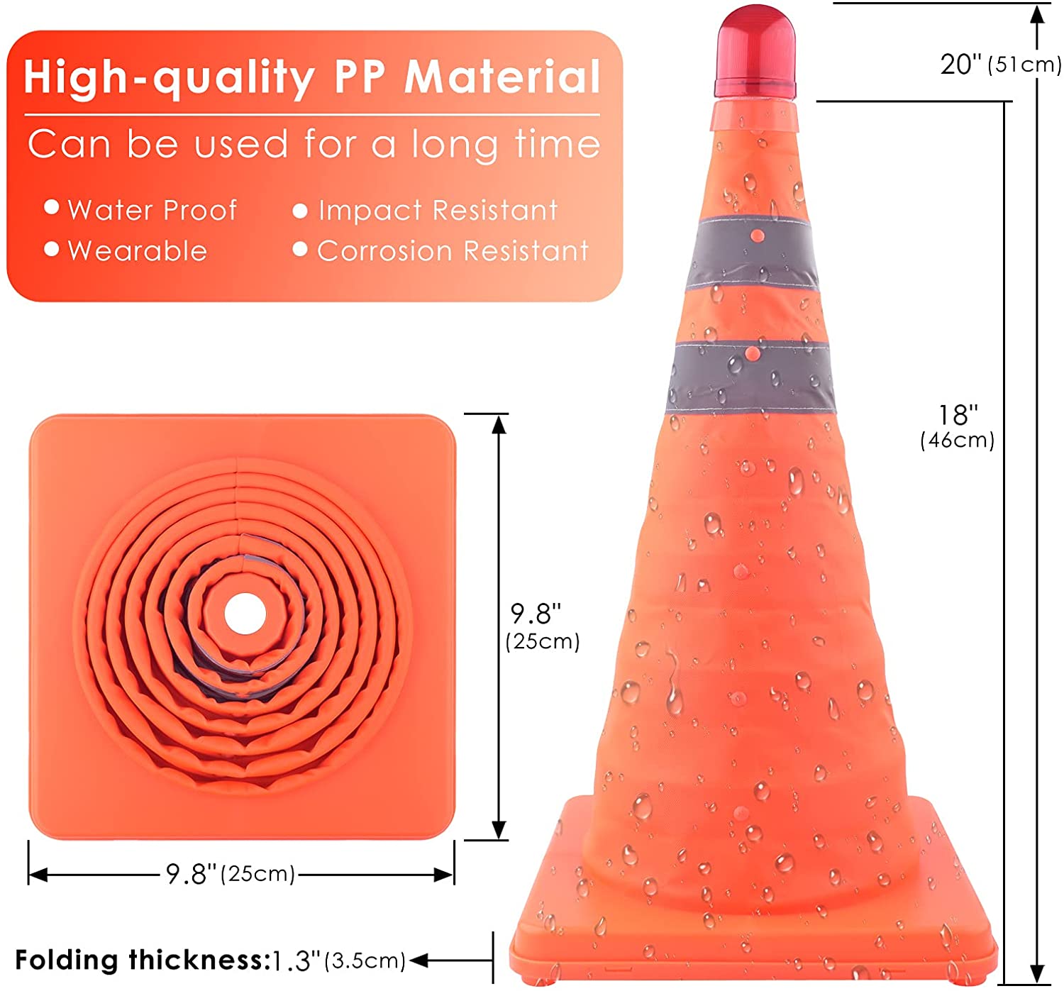 Travel safely with a Reflective Traffic Cone on hand! When you have to stop on the highway because of an obstacle, warn other drivers so that they slow down and stop their vehicles in time. It is also a lifesaver when you need to send an SOS signal. Give yourself a greater peace of mind with this powerful light!