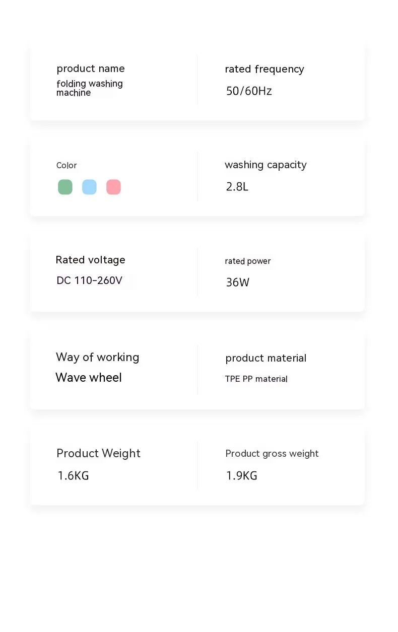 The Folding Dual-Purpose Touch Timing Portable Infant Clothing & Underwear Washing Machine is a compact and efficient solution for cleaning delicate fabrics such as baby clothes, underwear, and socks. Its foldable design, touch controls, and multiple washing modes make it an ideal choice for small households, apartments, dormitories, and travel.