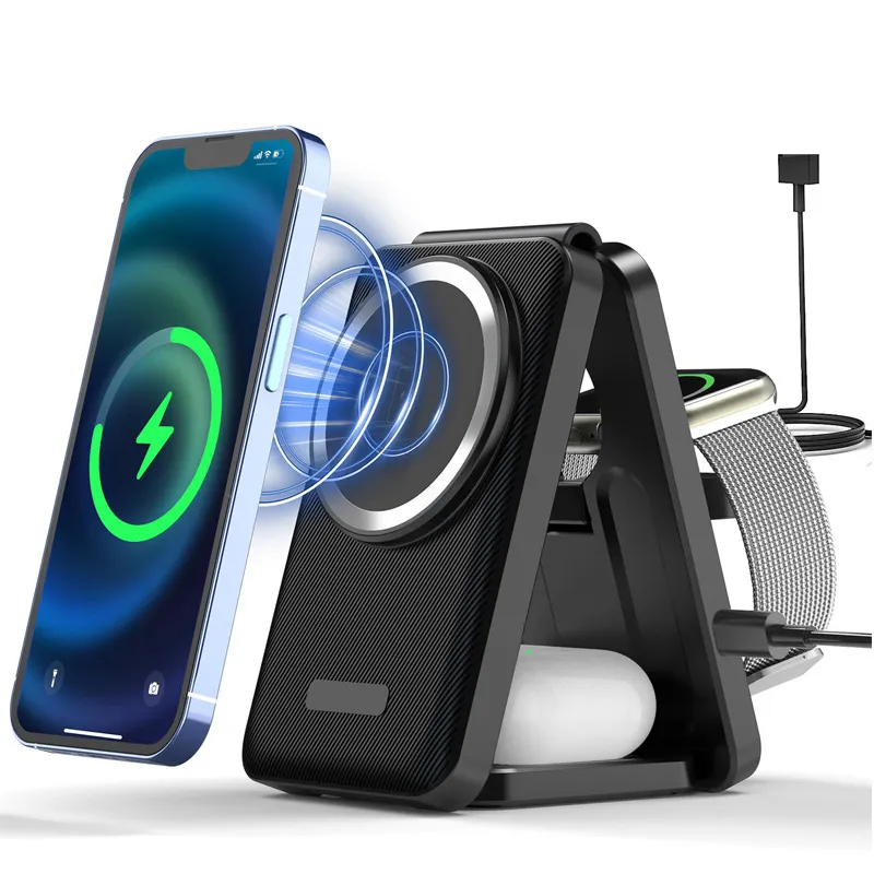Folding Mobile Phone Bracket Magnetic Three-in-One Wireless Charger: Ultimate Convenience in One Compact Design