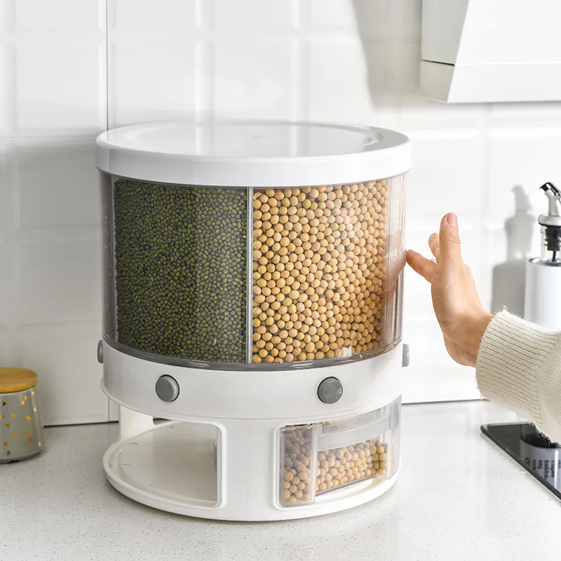 The Food Storage Box Rotatable Multi-functional Dividing Rice Bucket is the perfect solution for anyone looking to keep their pantry organized and their grains safe. With its rotatable design, multi-compartment system, and moisture and insect protection, this storage box provides the convenience and functionality that every modern household needs. Whether you're storing rice, lentils, beans, or other grains, this storage box ensures that your food stays fresh, accessible, and free from pests.