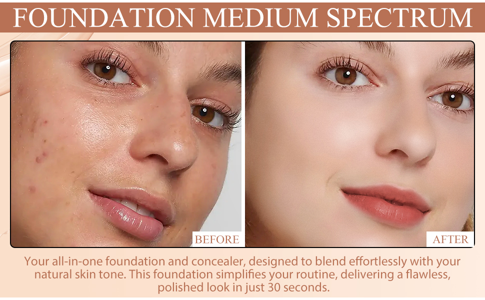 - 🌟 FAST TIME-SAVING 4 IN 1FOUNDATION: A great replacement for foundation and CONCEALER because it mimics your NATURAL SKIN TONES. This foundation cuts out so many steps and looks polished after 30 seconds of applying it. Feels incredible on the skin and it LASTS ALL DAY without creasing, literally HIDES EVERY BLEMISH without that thick heaviness.