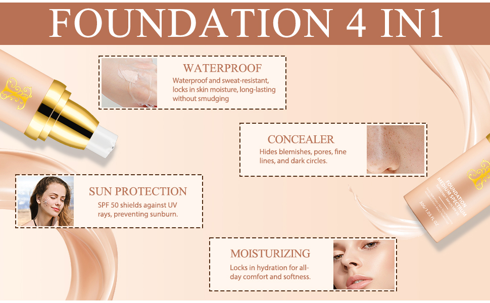 - 【4-IN-1 FOUNDATION】This Waterproof moisturizing light foundation Instantly mimics your skin tone and creates a uniform complexion without masking skin creating a illuminating silky finish.
