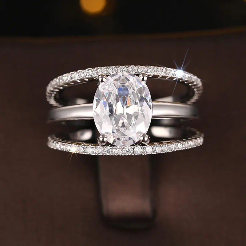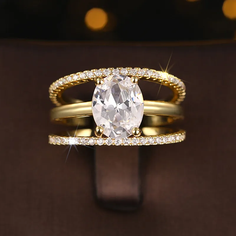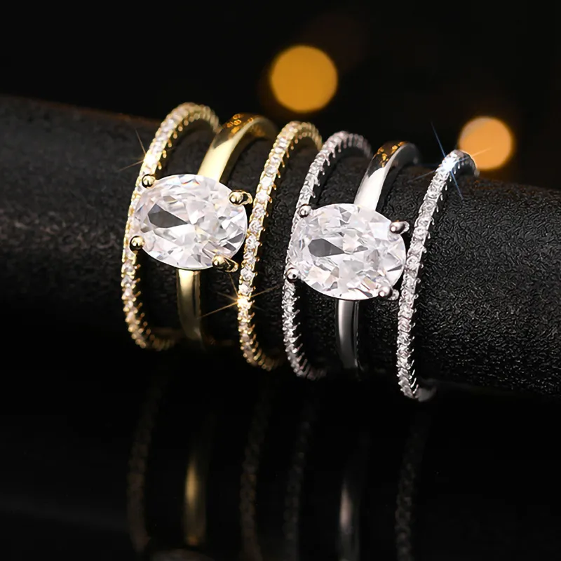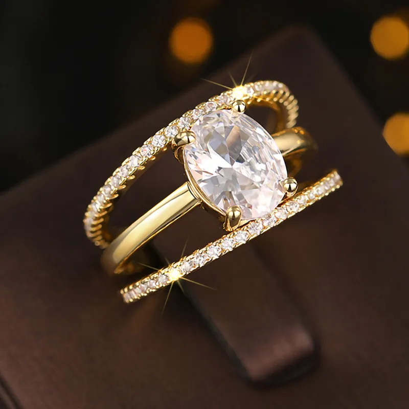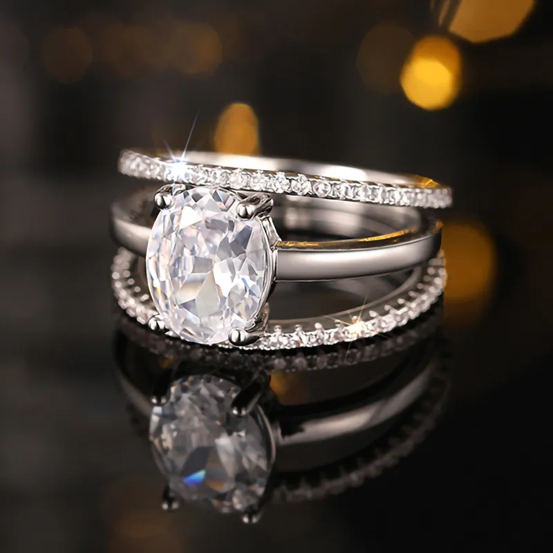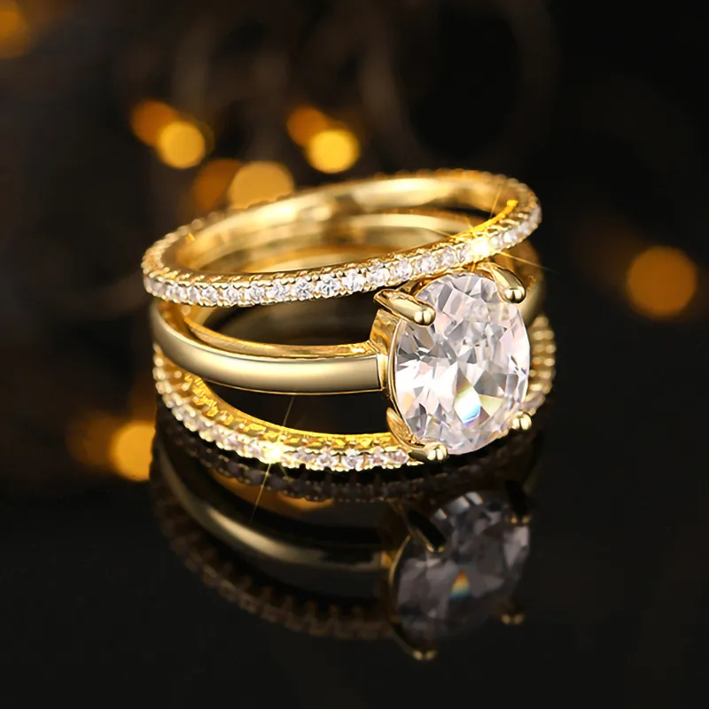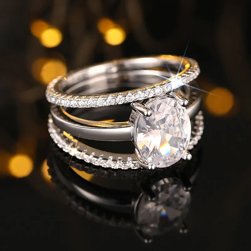Four-claw Inlaid Ring Three Ring Set Oval Female