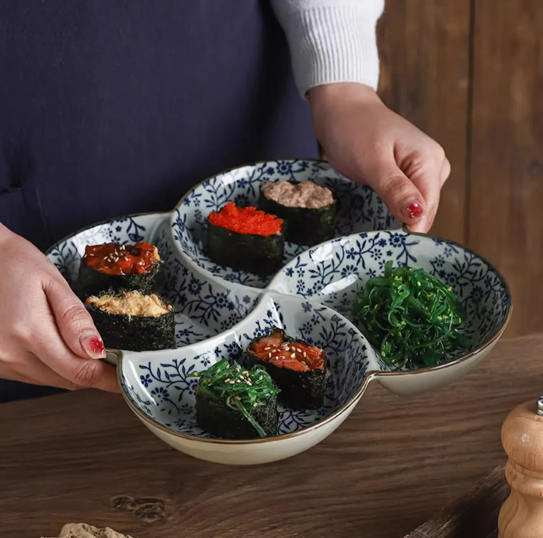 Four-grid Plate Cooking Retro Tableware Ceramic Fruit Platter