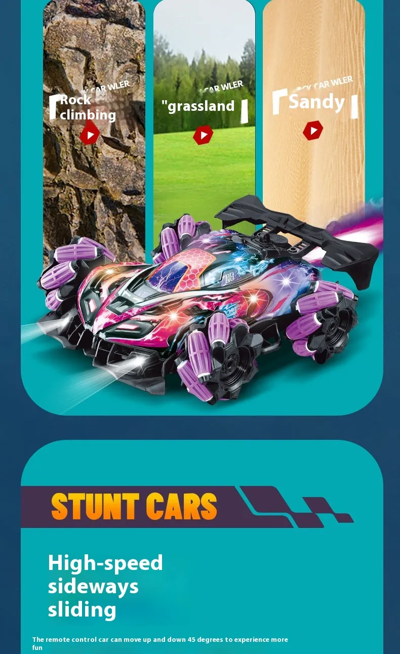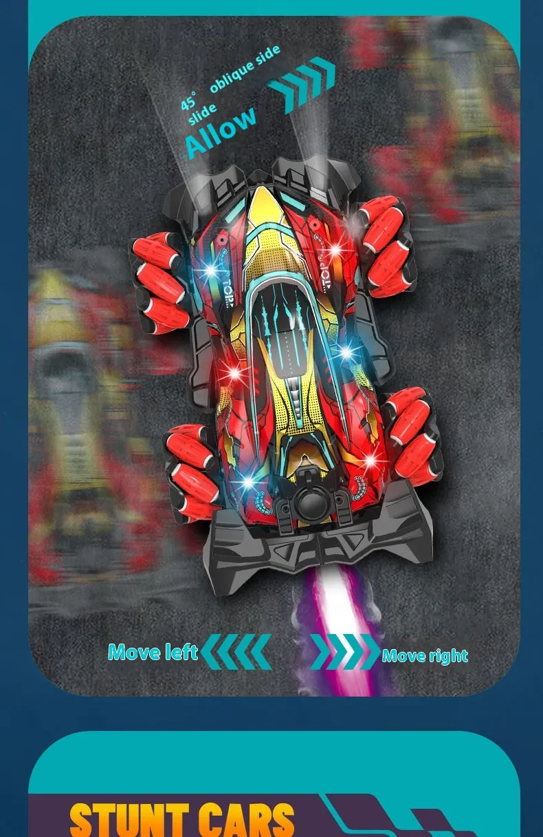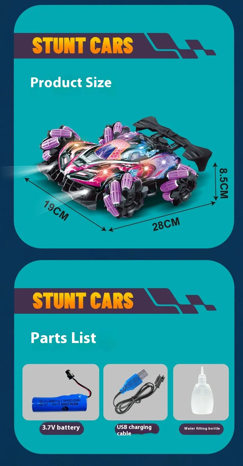 Ideal for anyone who loves remote-controlled vehicles, the Four-wheel Spray Remote Control Car Gesture Sensor With Light offers a dynamic, futuristic design, making it the perfect gift for car enthusiasts or anyone looking for a fun, interactive toy. Whether for play indoors or outdoors, this car’s versatility and unique features ensure that it will be a hit in any setting.
