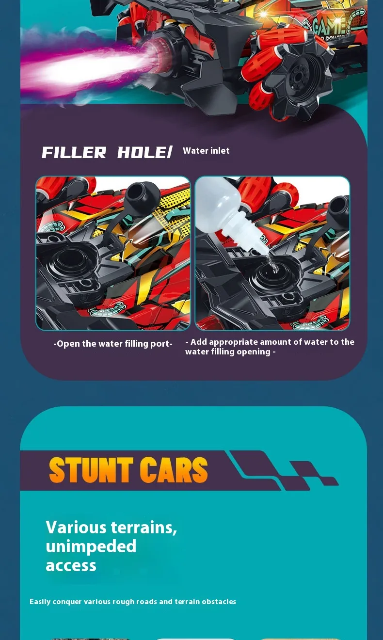 Exciting Spray Function: One of the standout features of this remote control car is its spray function. When activated, the