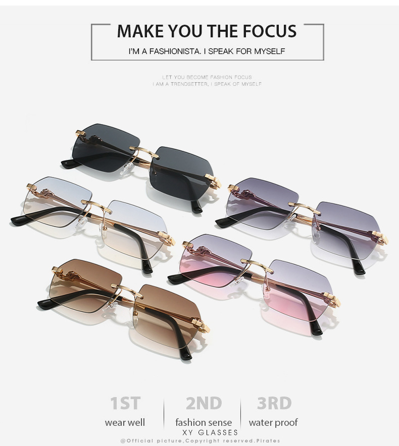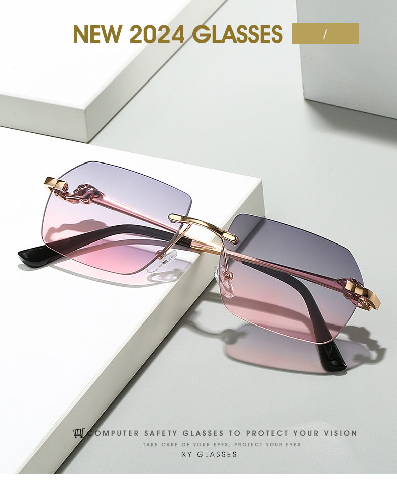 Frameless Trimming Leopard Sunglasses For Men And Women