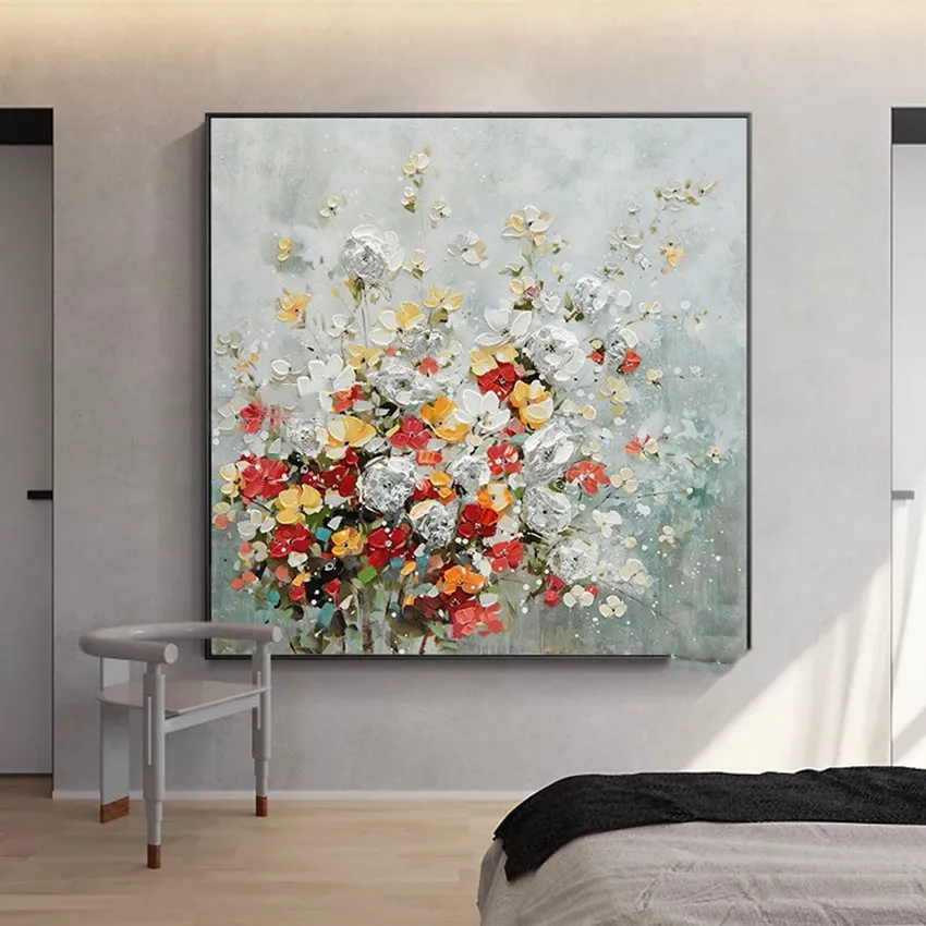 This Frameless White Flower Oil Painting is meticulously hand-painted by skilled artists, ensuring that each piece is unique and of the highest quality. The absence of a frame gives the artwork a modern and clean look, allowing it to blend seamlessly into any room without overwhelming the space. The oil paints used give the piece depth and vibrancy, while the lack of a frame allows for easy integration with your existing decor.
