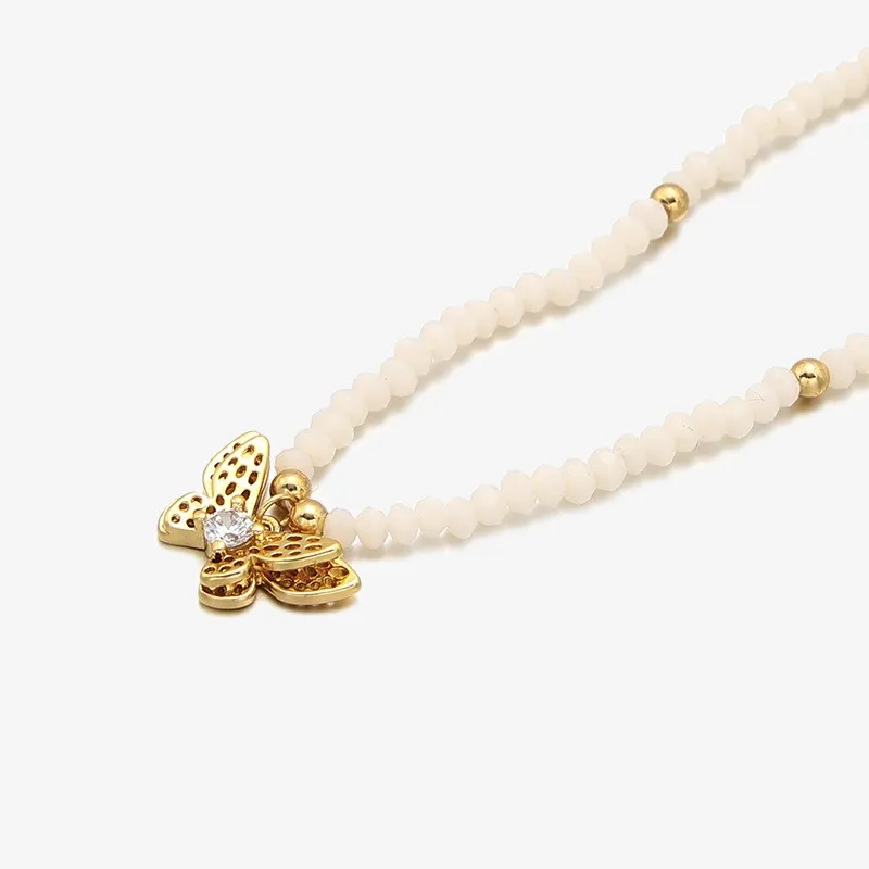 Color: Butterfly beaded necklace, gold triangle zircon necklace