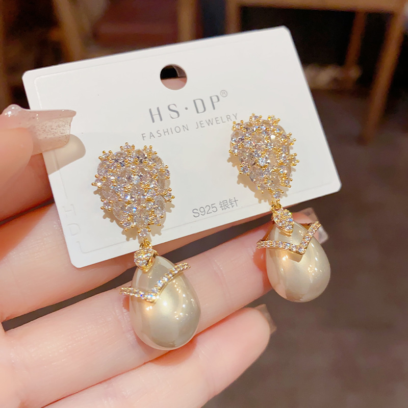 French Hong Kong Style Champagne Pearl Zircon Earrings Women
