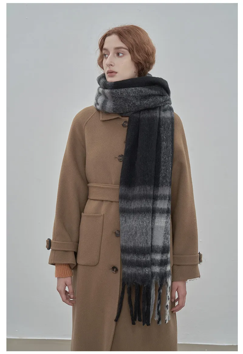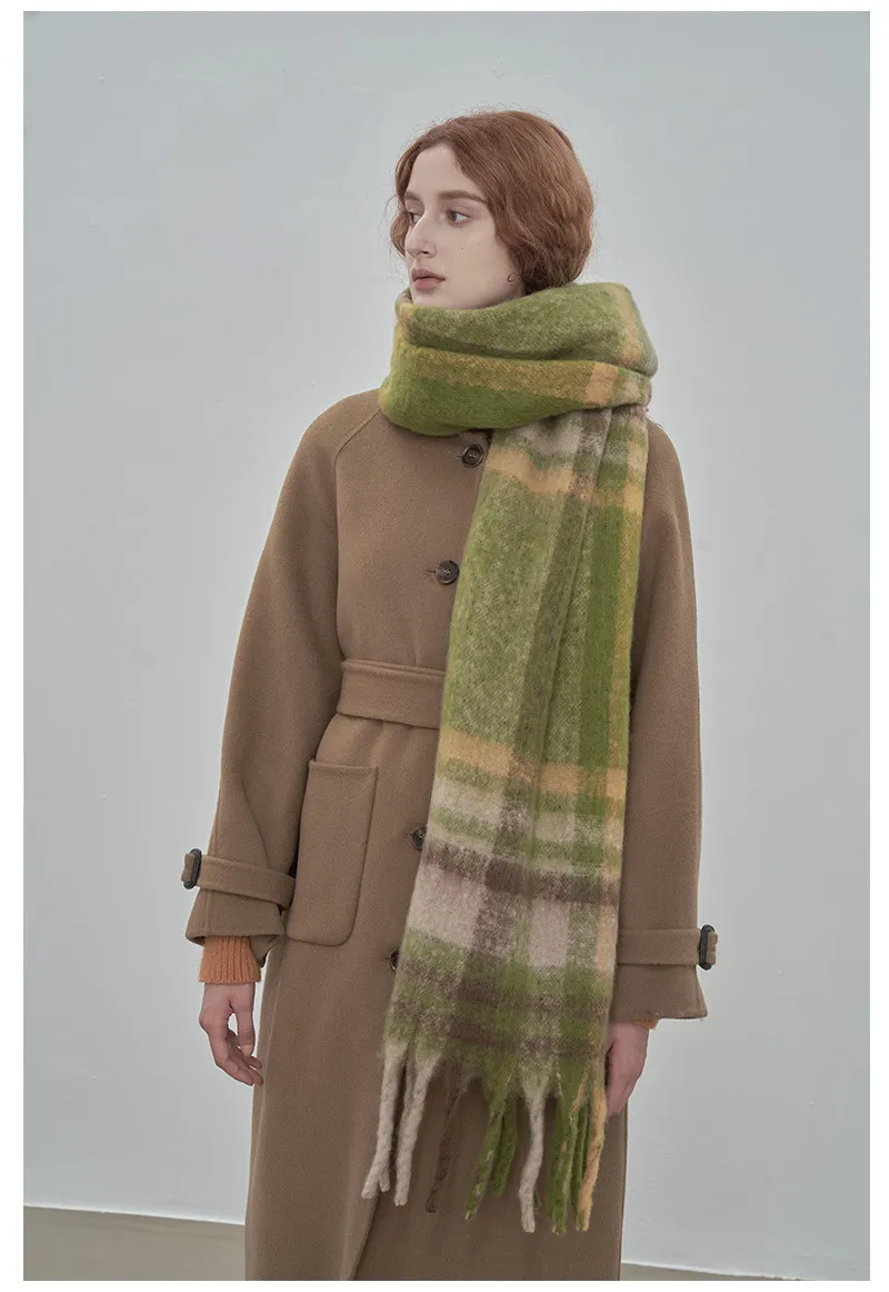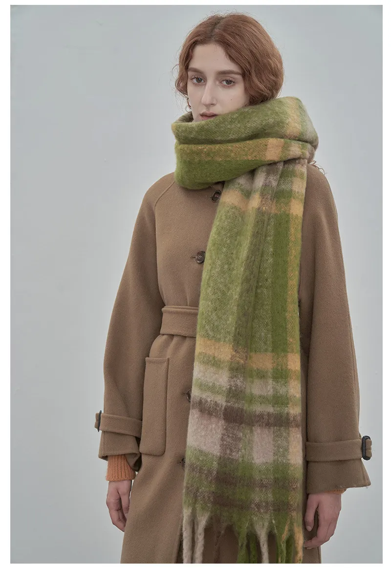 French Style Retro Lazy Style Warm Color Classic Plaid Scarf