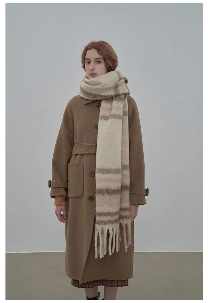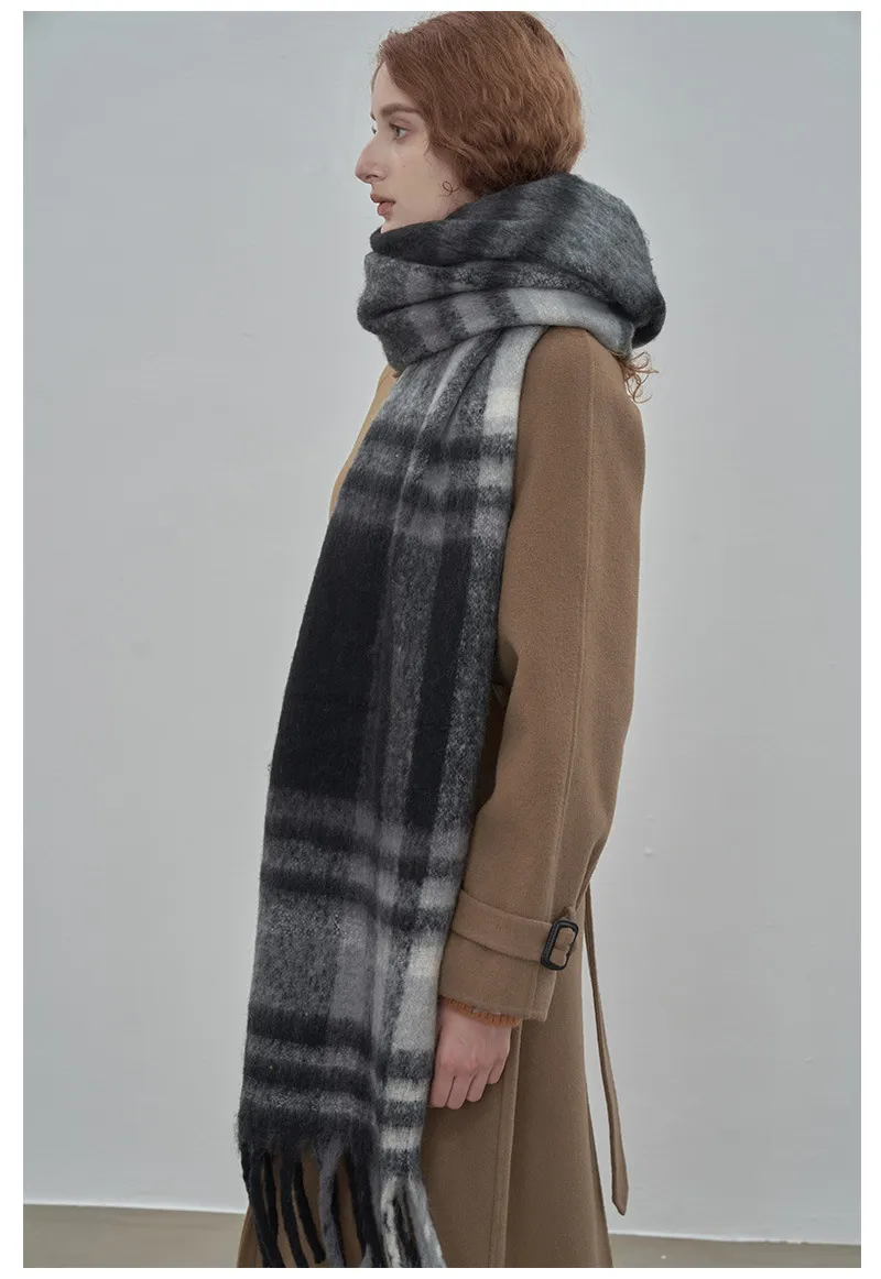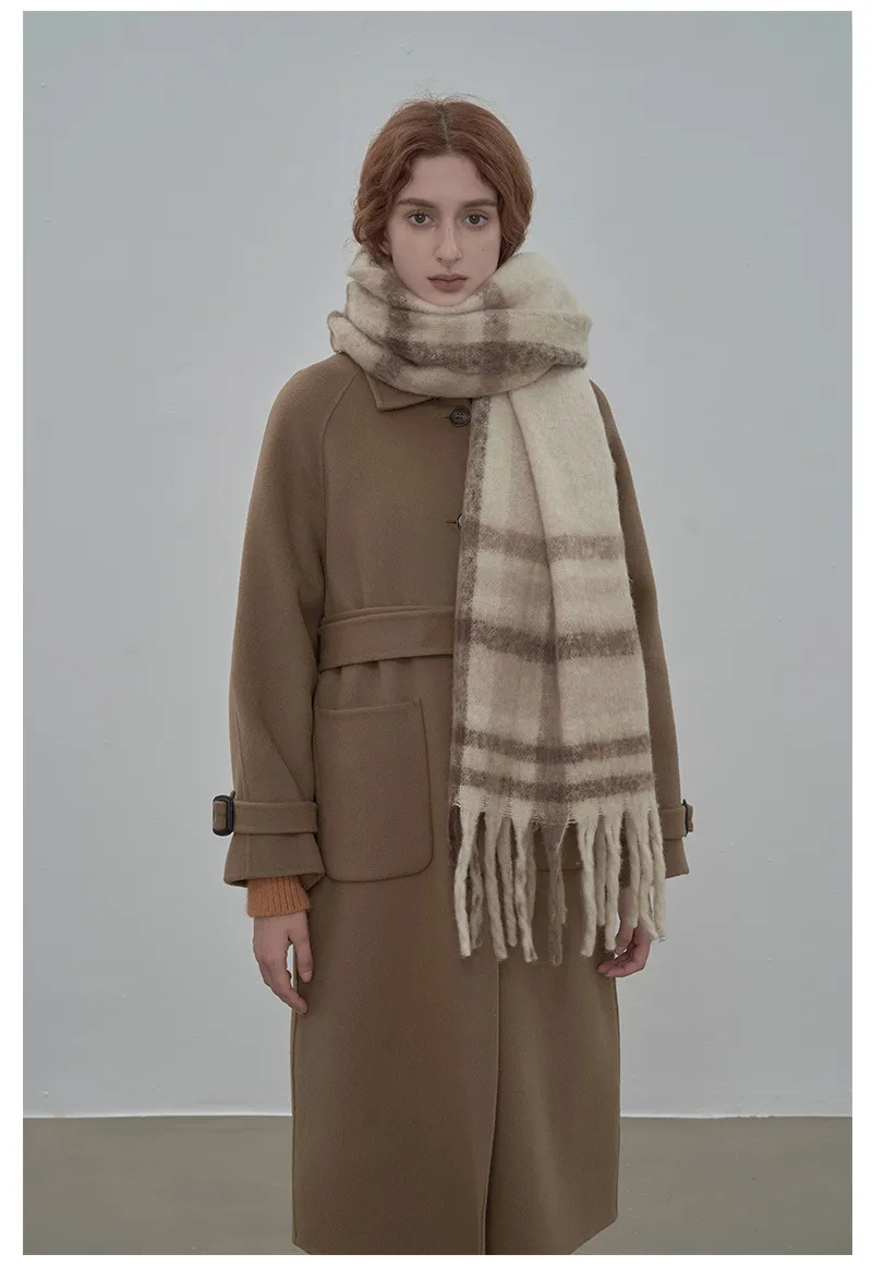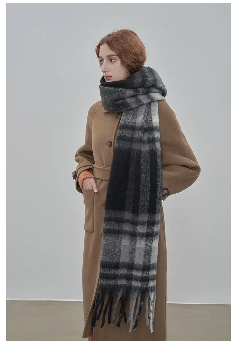 French Style Retro Lazy Style Warm Color Classic Plaid Scarf